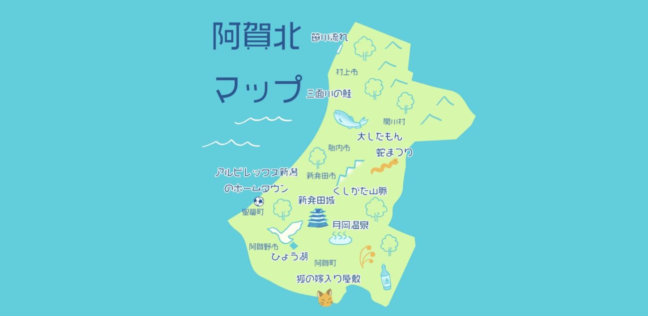 阿賀北ノベルジャムでは阿賀北の定義を阿賀川より北の地域とさせて頂いています。簡単にではありますが、阿賀北地域を構成する市町村を物語の題材となりそうな特徴と共に紹介していきたいと思います。