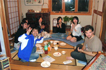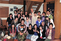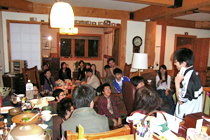 その後の新入部員歓迎会は、ブラウン先生のお宅で行われました。新入部員と現役のメンバーに加え、OB・OGなどの先輩たちや、ご協力いただいている地域の方々も参加して、とてもアットホームで楽しい会となりました。こうやって、縦にも横にも、敬和学園大学の輪が広がっています。