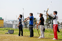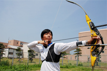 この対象種目の1つであるアーチェリー部は、この4月に新潟県の国体監督でもある夏井博臣さんを監督兼コーチにむかえました。学生たちは夏井監督とともに、毎日、授業のはじまる前の朝練習および授業後の定期練習を続けています。日々の練習の成果はすでに出てきており、新潟県代表強化選手として、夏井監督をはじめ、国際文化学科の梨本晃太さんと共生社会学科の本間唯さんの3人が選ばれました。2004年に完成したアーチェリー場もよりレベルの高い練習に耐えられるように、今後改良していく予定となっています。