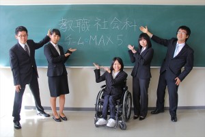 昼休みに、社会科教職課程の学生5人が広報入試課に来てくれました。