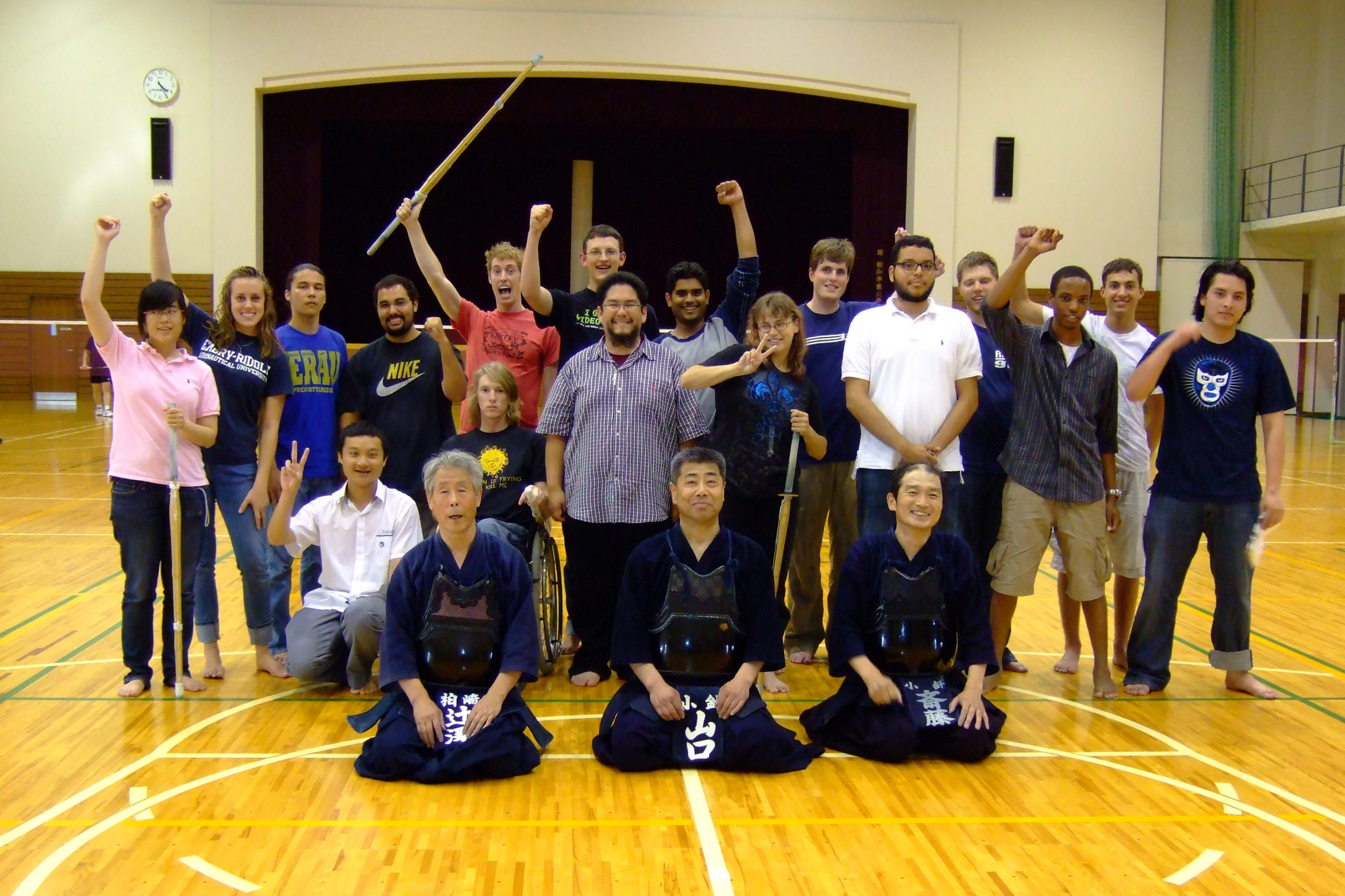今年度の1回目は、アメリカ「エンブリィ・リッドル航空大学」から学生たち19名が日本文化と日本語を学びに来日しました。約1ヵ月間、学生と会話やスポーツ、茶道や剣道などの日本文化を通して交流し、また近隣アパートでの生活や、ホームスティをしながら日本の暮らしを体験しました。
