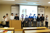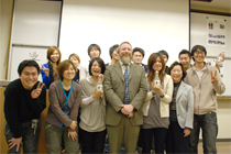 国際文化学科のマーク・フランク先生のゼミ生たちが、この一年かけて敬和ブランドの「日本酒」造りにチャレンジし、できあげたお酒「わ」の完成発表会を、敬和学園大学を会場にして開催しました。