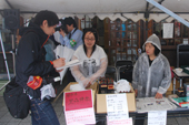 第6回となる今回の十二斎市では、東日本大震災で被災した方々のために何かお役にたてないかと、風評被害の多い福島県の野菜の直売、そして学生による募金活動を行いました。これらは日本赤十字社を通じた寄付にあてる予定です。また岩手県陸中沿岸地方で何百年も続く、重要無形民俗文化財に指定されている黒森神楽の権現様と称する獅子頭を模した置物なども皆様のご協力のもとに完売することができました。この獅子頭の売り上げは現地の文化財復興に役立てられます。