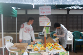 地元農産物、地魚など新鮮な産直産物、山野草や自然食品、手作り雑貨、各地の名産品、手作りサンドイッチなどのほか、学生によるまちカフェのカレー、新発田市社会福祉協議会のご協力による手作り小物、ジャージャー麺、たこ焼きの出店、卒業生が農場長をしているエクアドルのバナナの販売もあり、若い力があふれた朝市となりました。