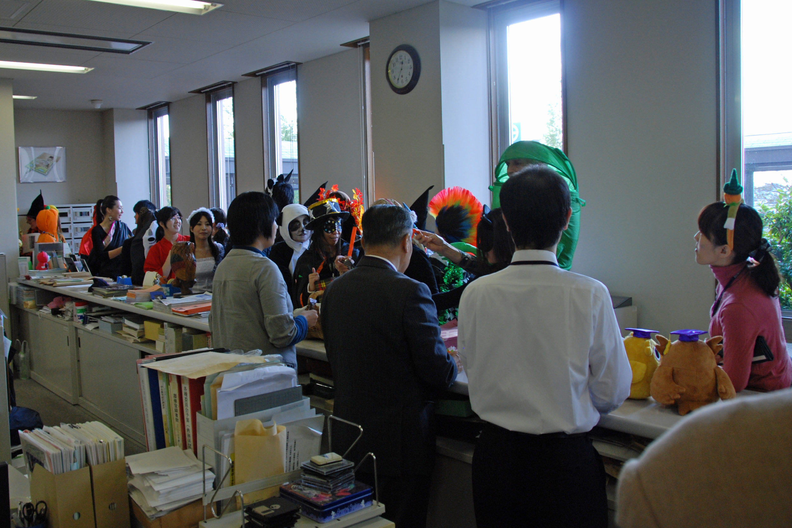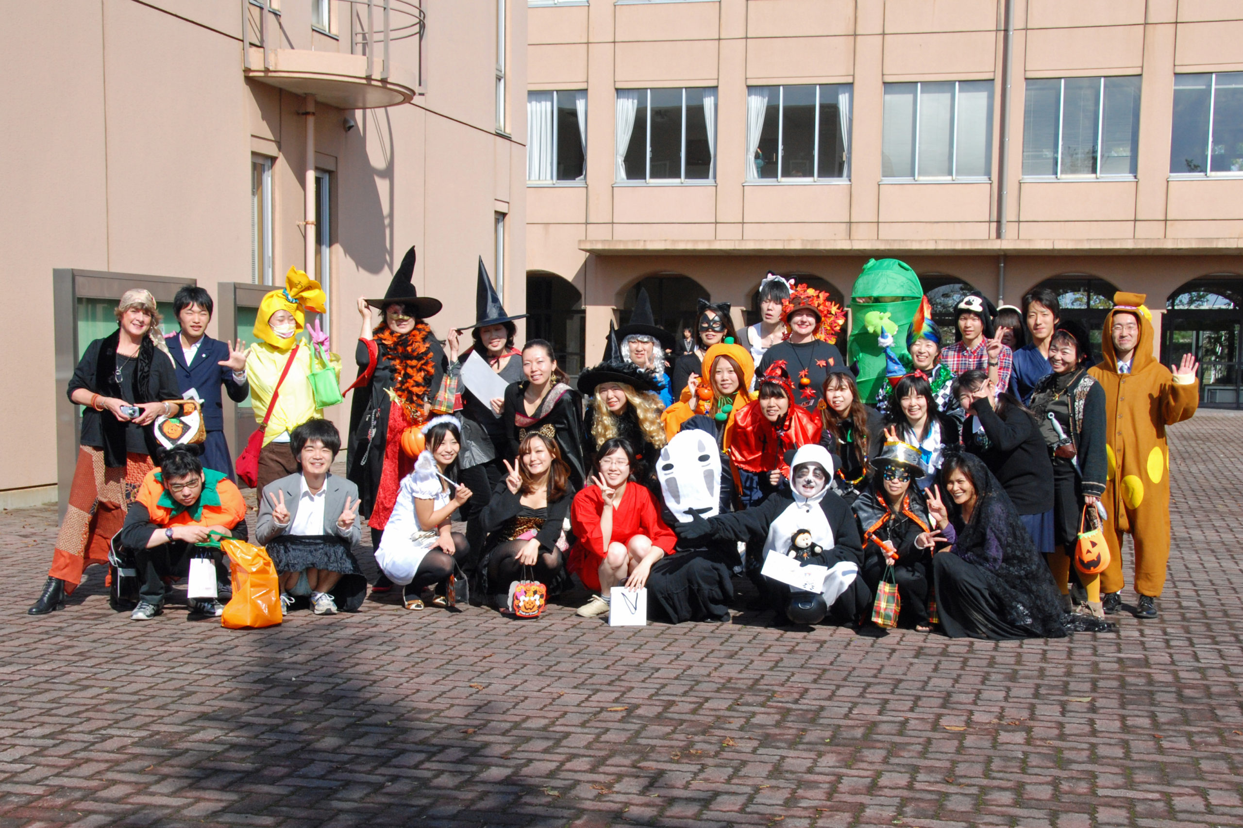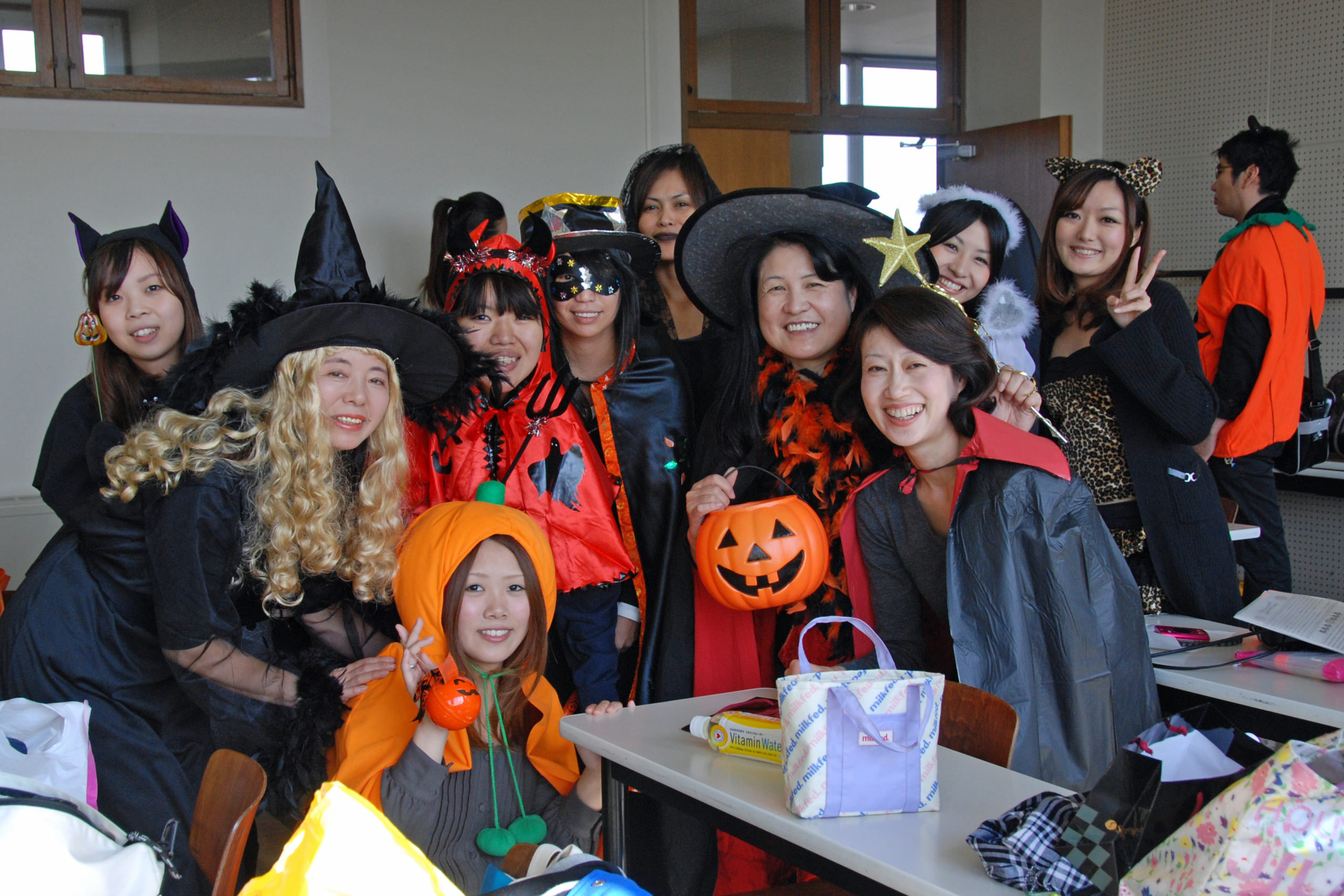 Trick or treat!! 今年も恒例のハロウィンパレードがやってきました。この仮装パレードは、外山節子先生の授業の学生たちと敬和国際ボランティアサークル(K.I.V.)が中心になって行っているものです。