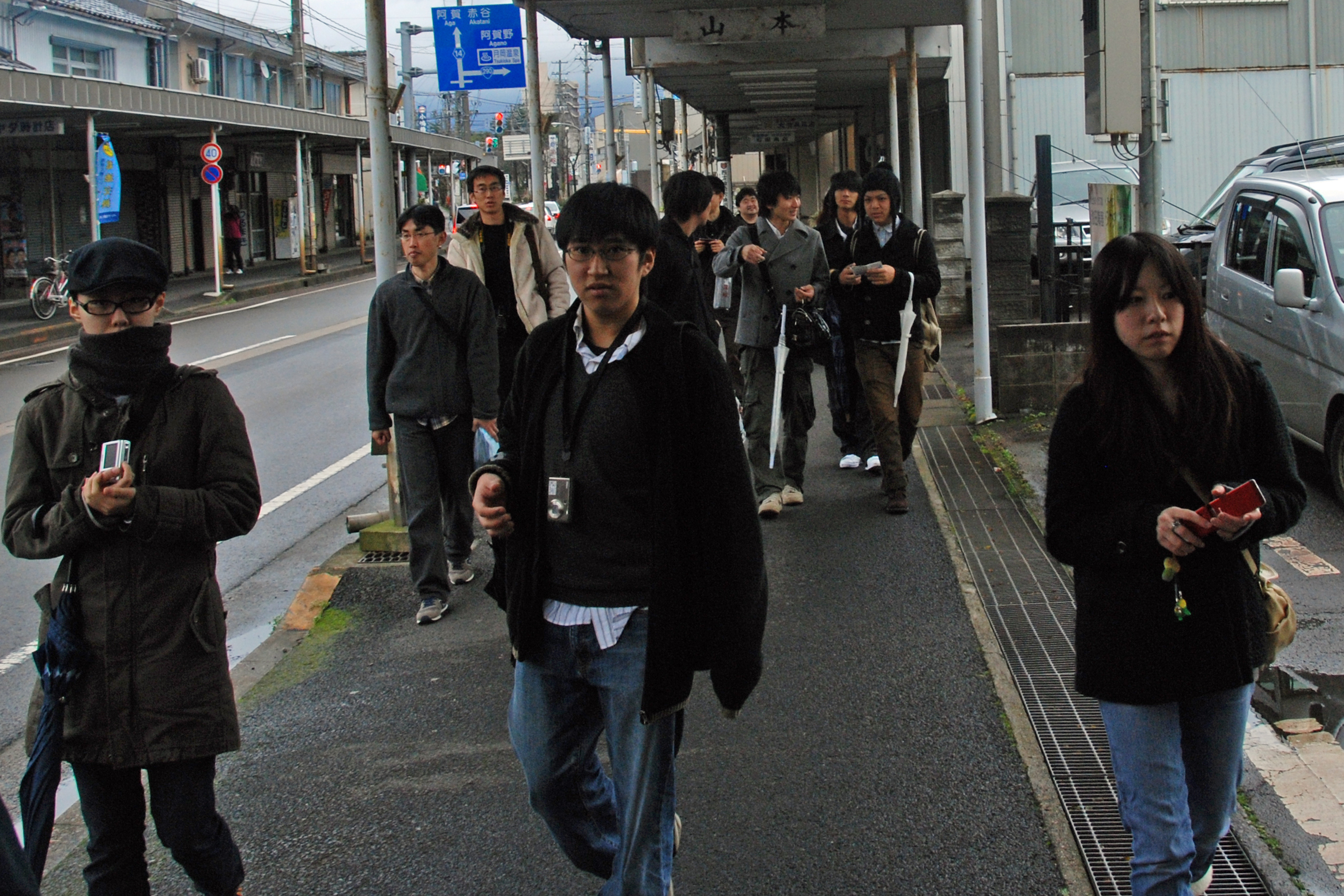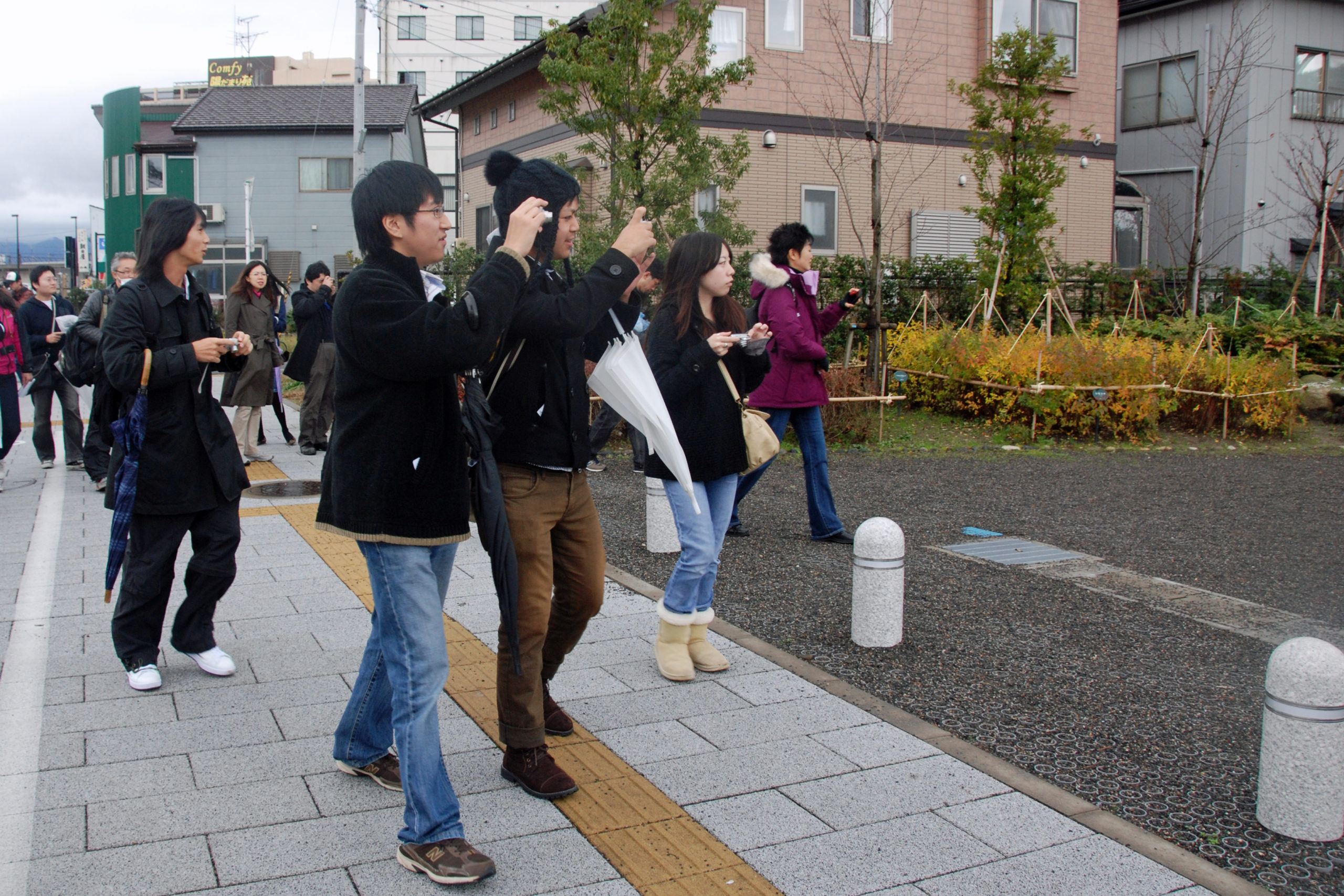 カメラを持って街を歩き、撮った写真をネット上で公開するイベント、フォトウォーク。世界各地で行われているフォトウォークを、新潟で企画しているのが、本学の一戸准教授とゼミのメンバーたちです。4回目となるフォトウォークは、地元新発田での開催となりました。当日は小雨まじりのあいにくの空模様ながら、県内外からあわせて25名(本学学生は9名)が参加しました。写真を撮るだけではなく、街のなにげない風景から話がはずみ、意外な出会いも生まれます。当日撮影された写真は、参加者それぞれが写真共有サイトに掲載し、さらに交流が深まるそうです。