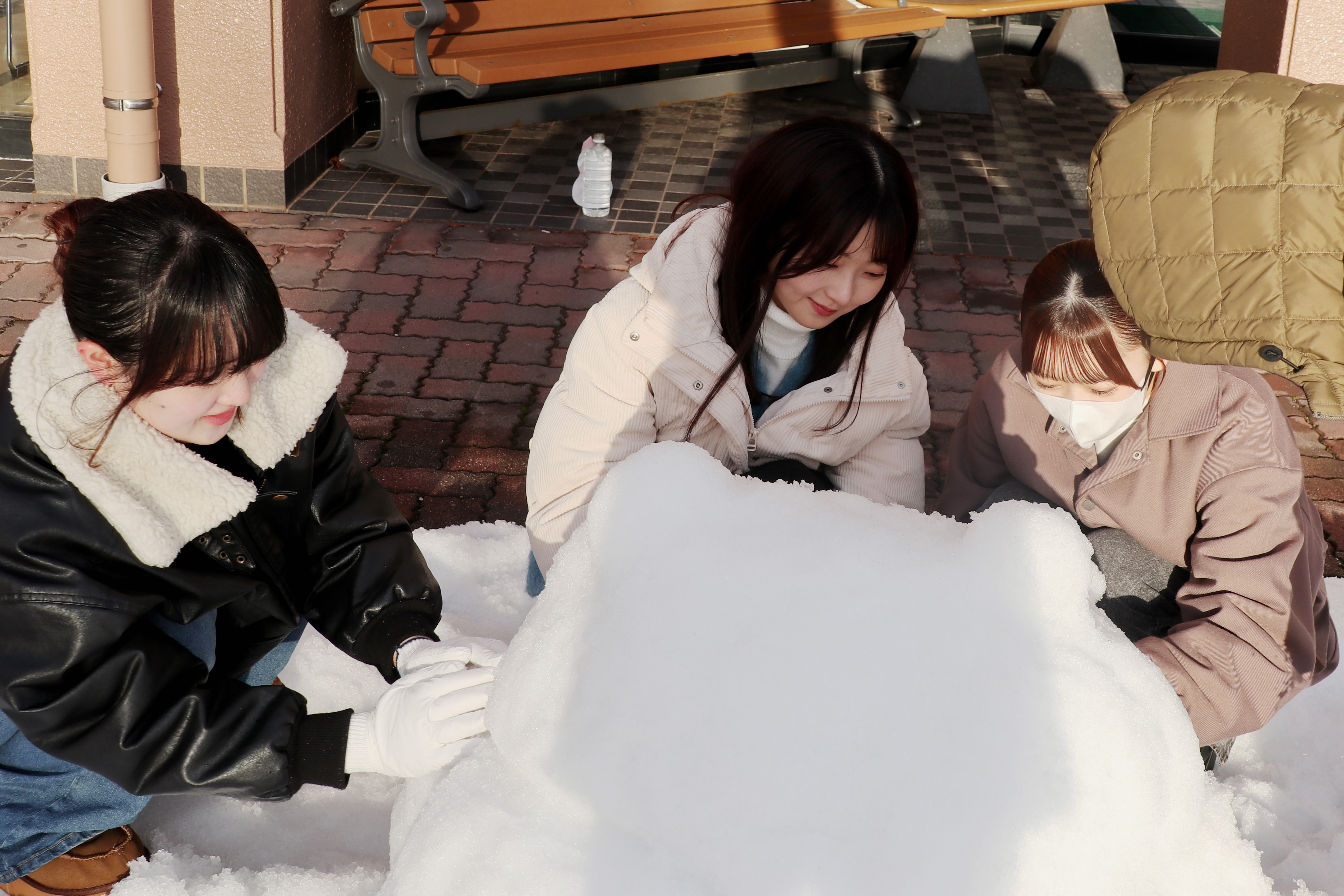 教職課程の学生たちが雪像づくりにチャレンジしました