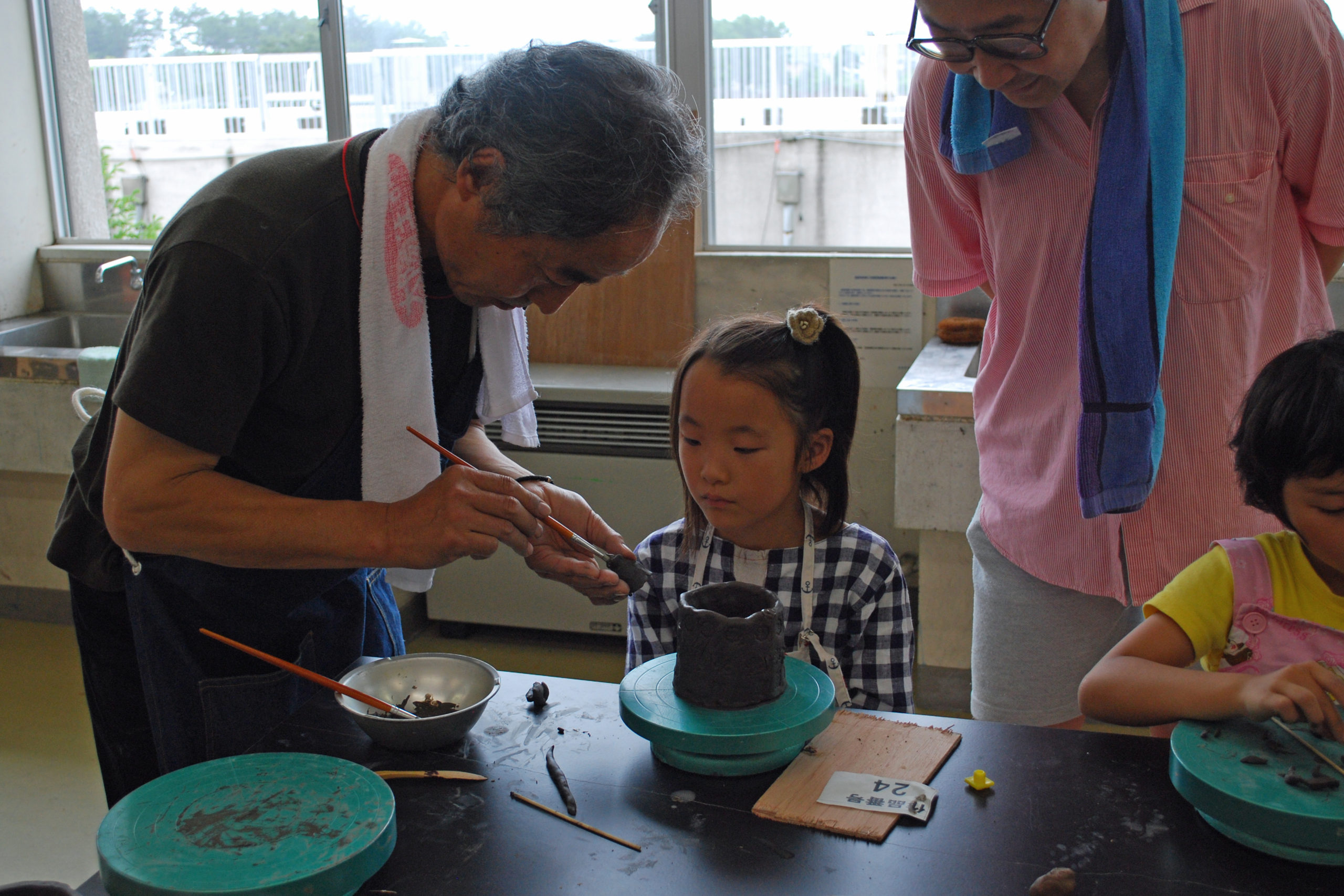 敬和学園大学の趙先生を講師に、聖籠町で小学生対象の陶芸教室を開催しました。 35名の参加者のほか、地域の陶芸愛好者のみなさんや本学学生がボランティアとして参加しました。子どもたちも親御さんも終始笑顔を絶やさず、時には真剣な表情で世界にひとつしかない自分だけの作品を創作しました。また、地域社会での世代を超えたふれあいが人々の生きがいや自己実現にもつながっていることを実感できた一日でした。