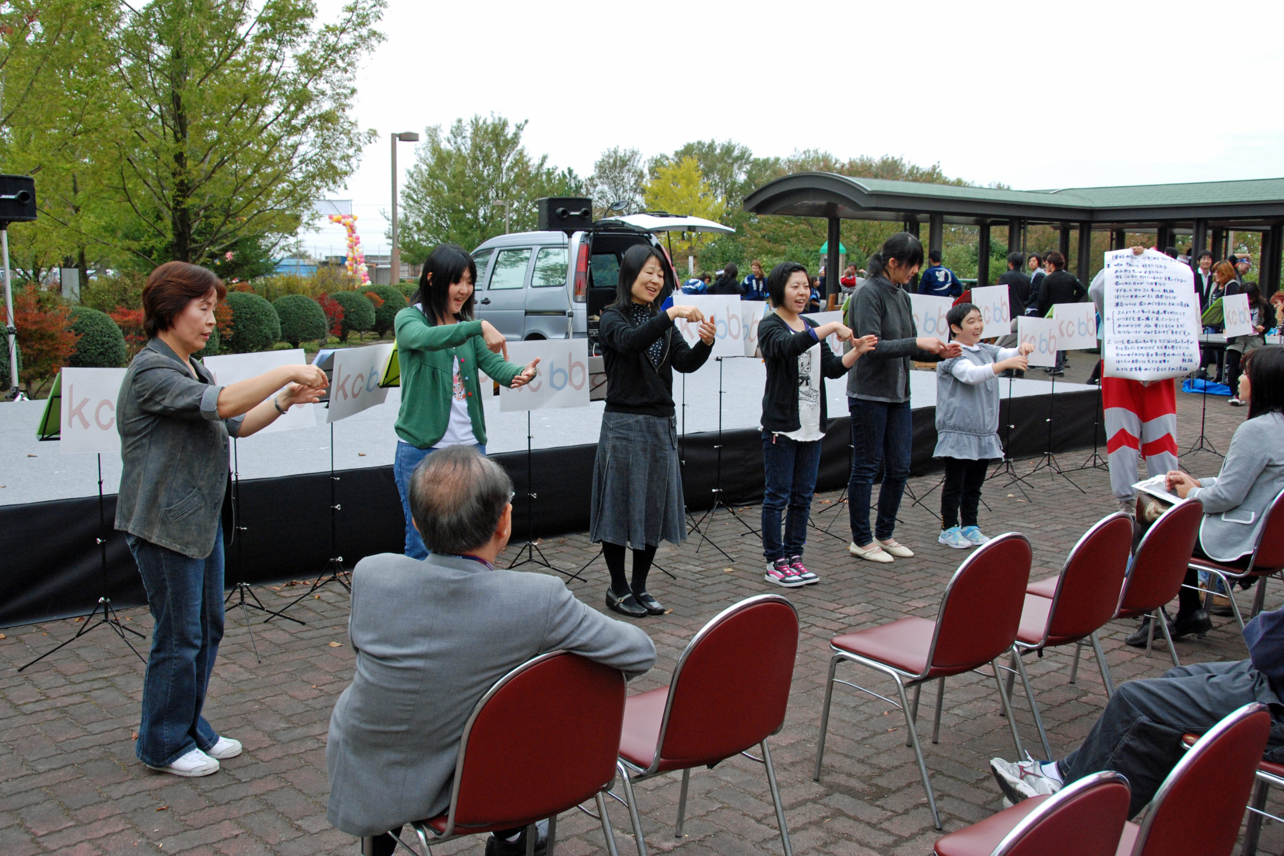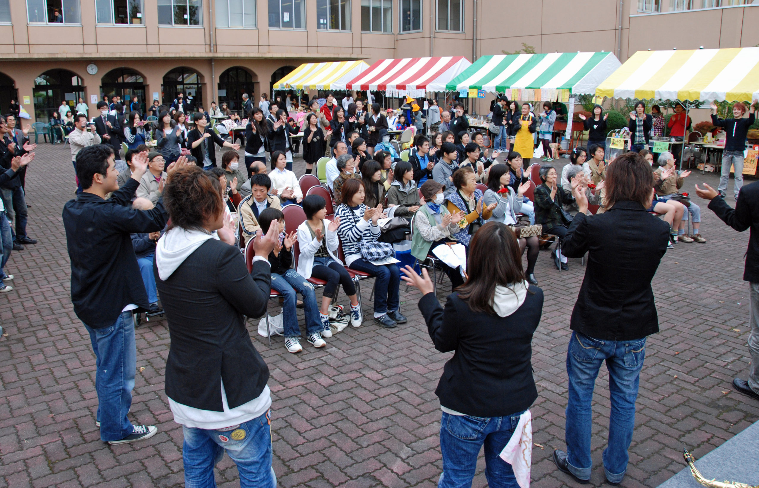 その他、陶芸部による陶芸体験、FMラジオサークル公開放送、外山節子先生による「英語で遊ぼう!」や地元団体によるフラダンス披露、聖籠太鼓・響・SATO-OTOによる公演と、学生たちの若さが溢れ出た1日となりました。(2日目に続く)