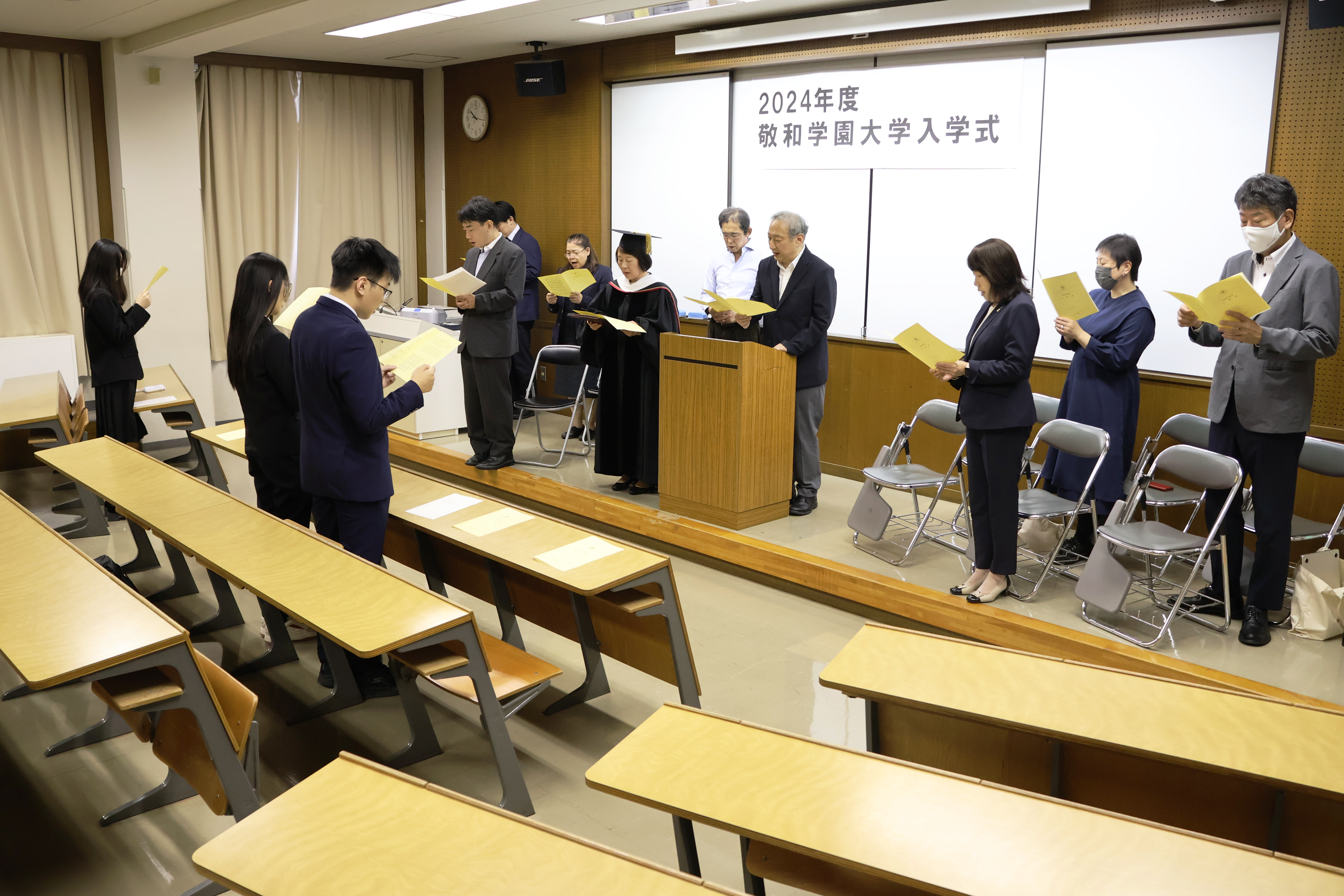 2024年度後期入学式が敬和学園大学で行われました。
