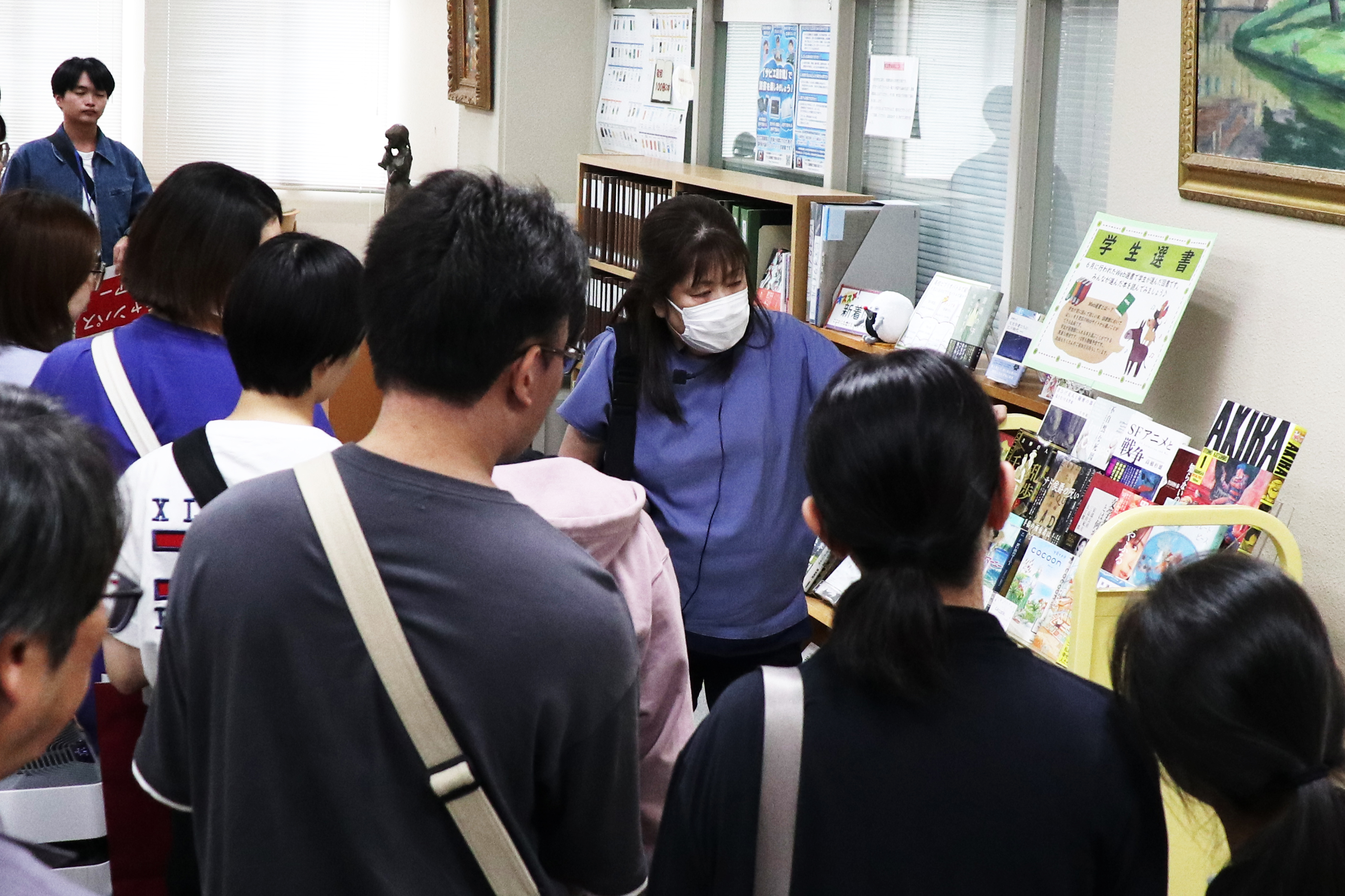 キャンパスツアーでは、実際に学生たちが利用している「事務室」、「図書館」、「キャリアサポート課」、「体育館」を見学し、普段の学生生活を確認して回りました。