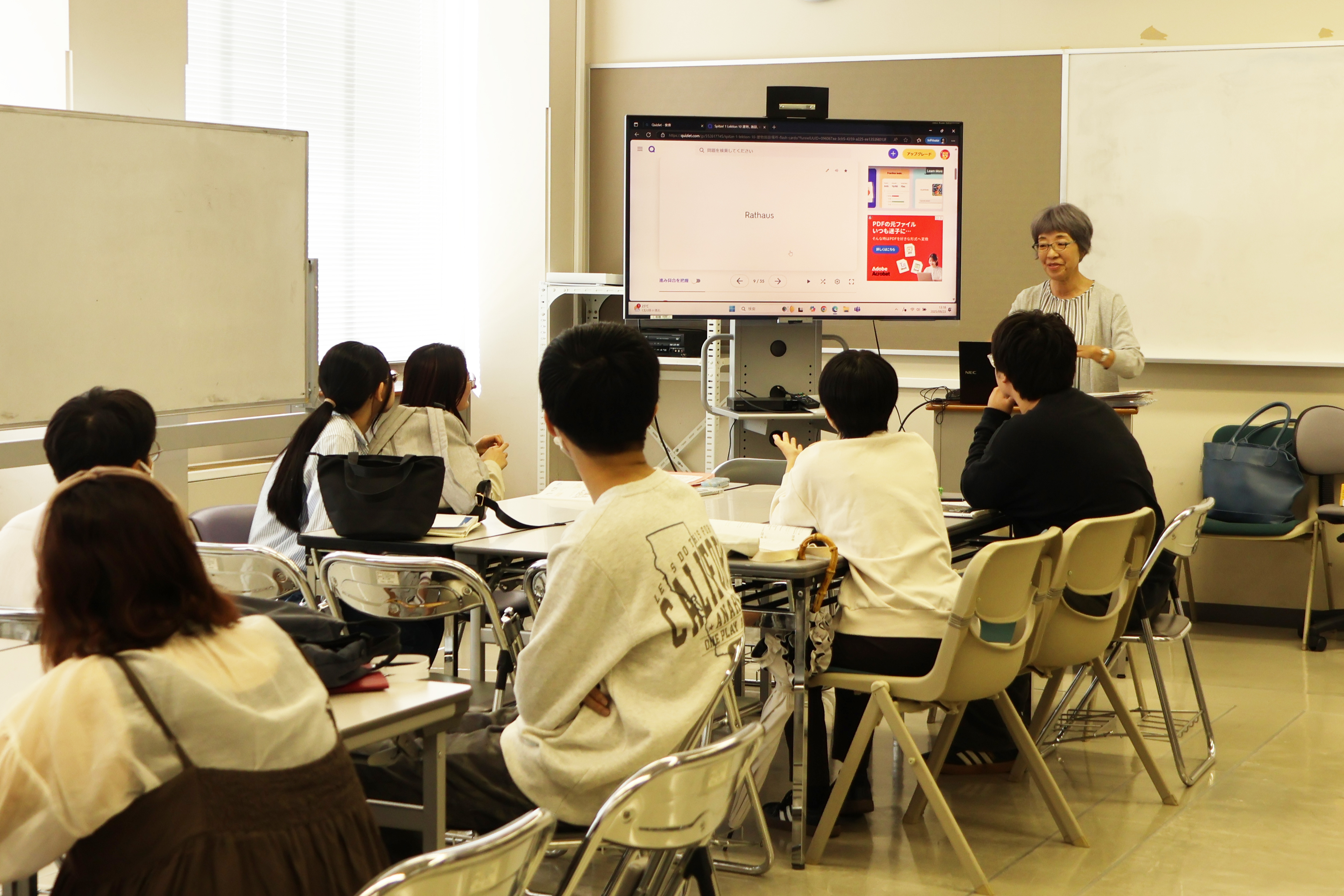 午後からは、先輩学生が受講している普段の授業に参加して、大学での学びを体験しました。