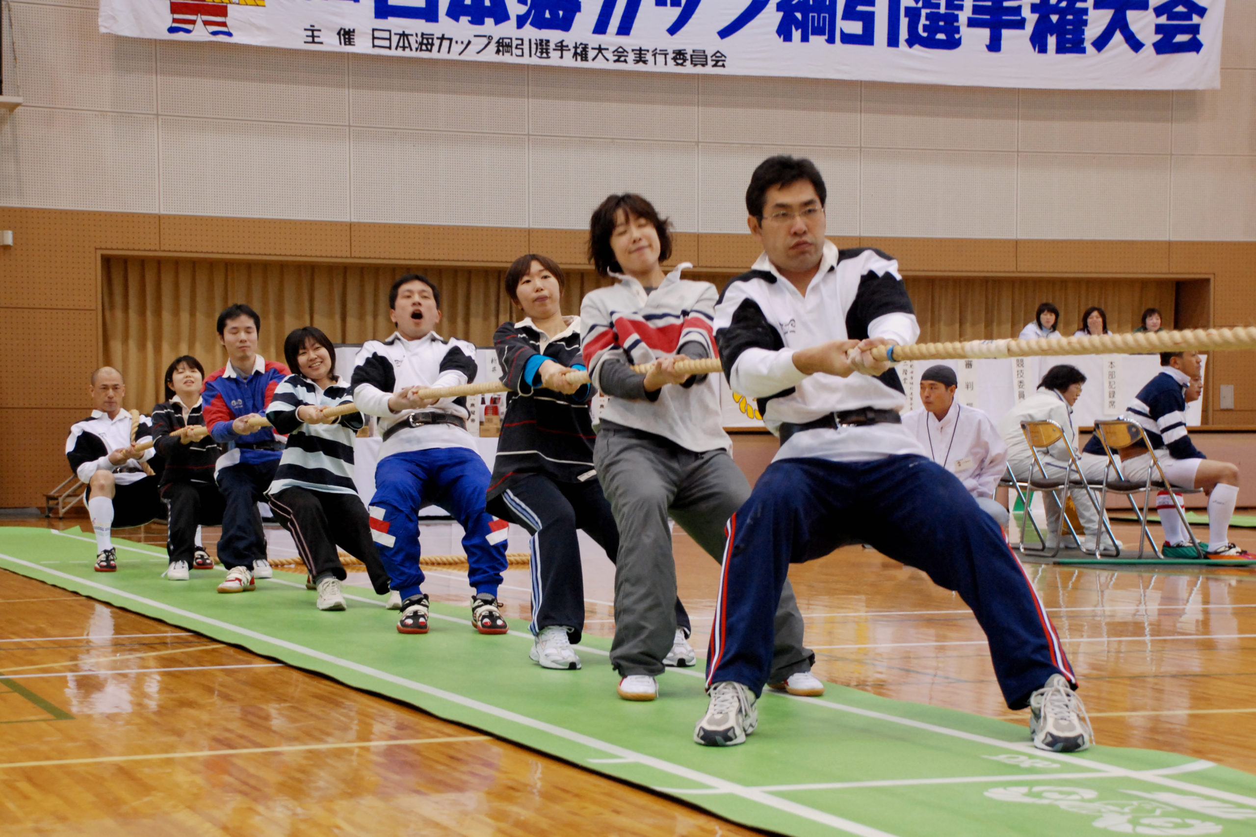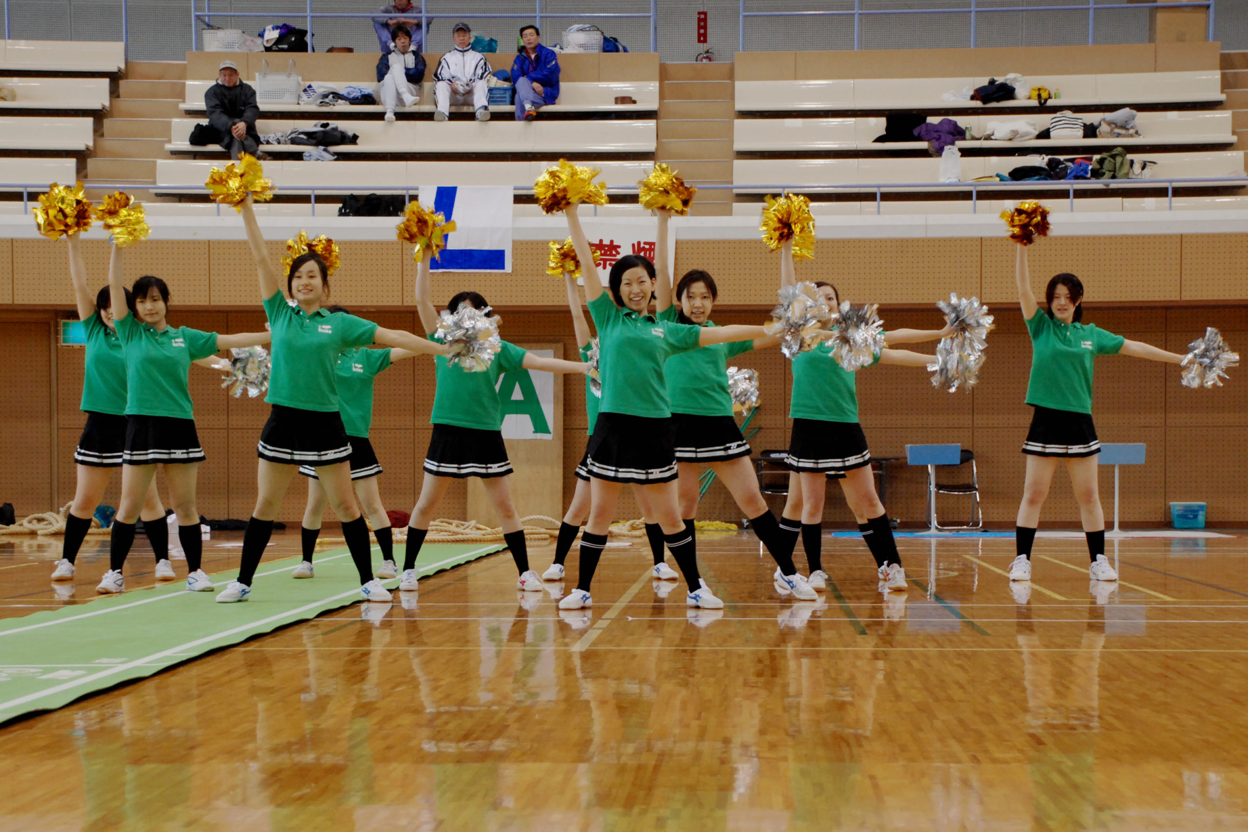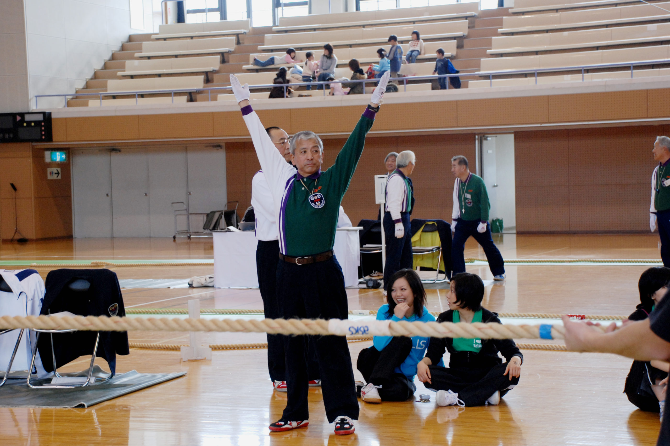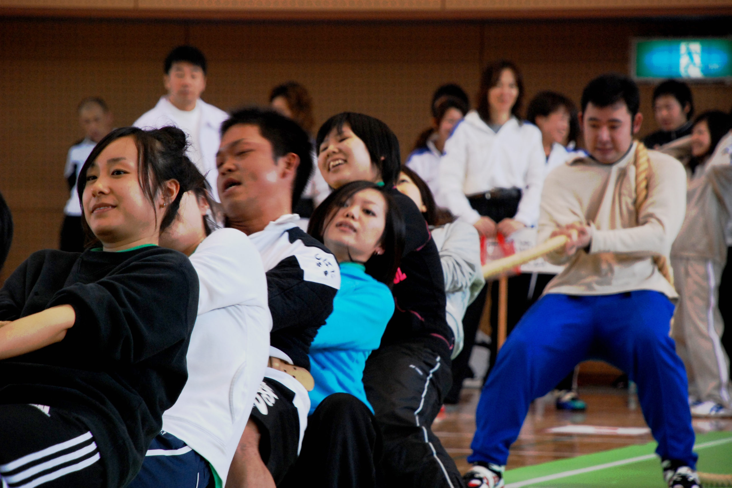 敬和学園大学からは、男女混合の部に3チームと男子一般の部に1チーム、それぞれ地元の自衛隊の方に助っ人として加わっていただき、参加しました。この大会の審判長を務める、高橋満さん(敬和学園大学 施設係職員)の指導の下、大会前の数ヶ月、学生・教職員とも大学の体育館を使って練習を重ねてきました。大会当日は、学長も応援にかけつけてくださり、全員がひとつになって力いっぱい綱を引きました。また、開会式や休憩時間などでは、本学のブラスバンド部の演奏やチアリーダー部の踊りがあり、大会を盛り上げるのに一役かいました。