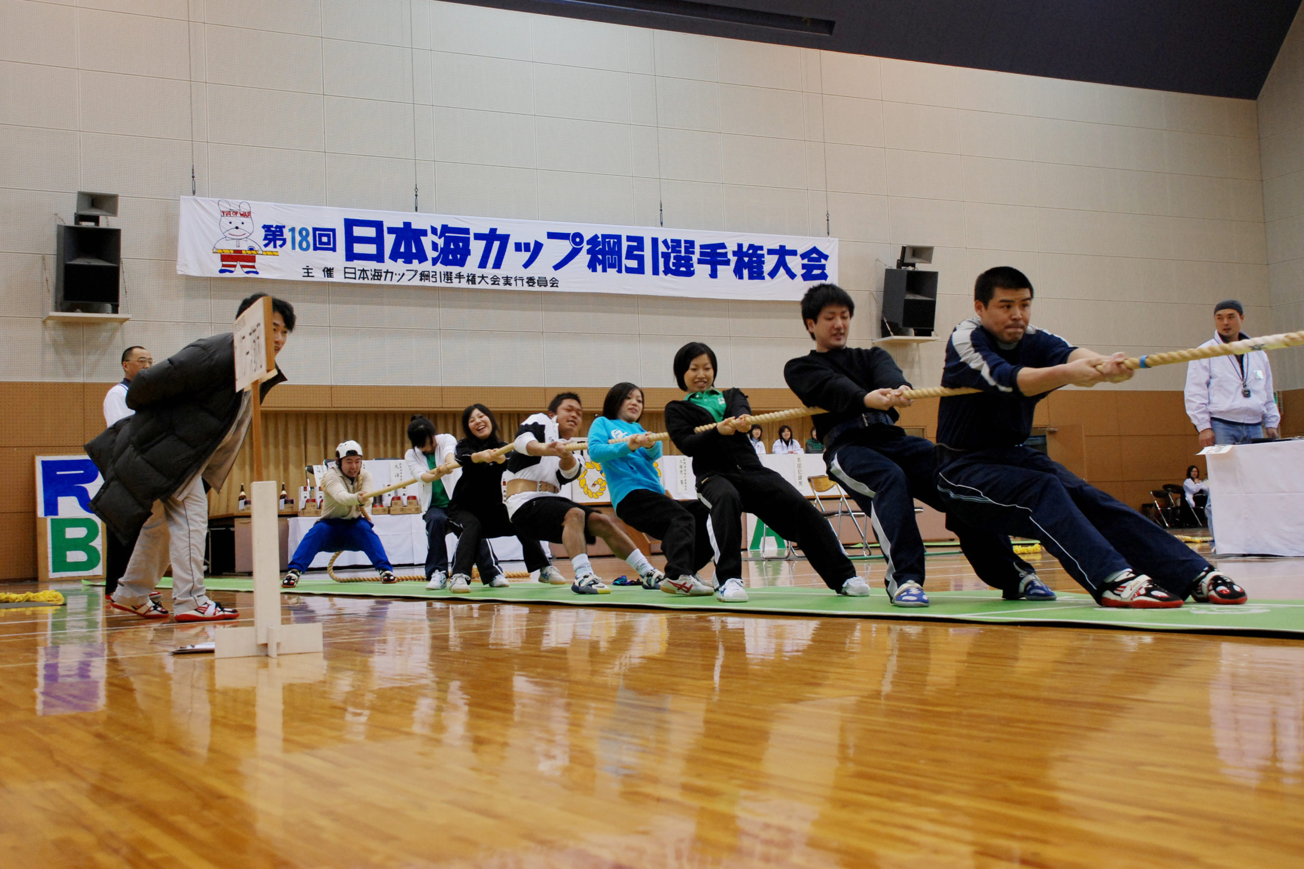 新発田市カルチャーセンターにて行われた「日本海カップ綱引選手権大会」に、敬和学園大学の学生と教職員でチームをつくり、参加してきました。この大会は、冬の新発田を盛り上げようというアイディアから生まれた大会で、今年で18回目の開催となります。新潟県内外から合計24チームの参加がありました。