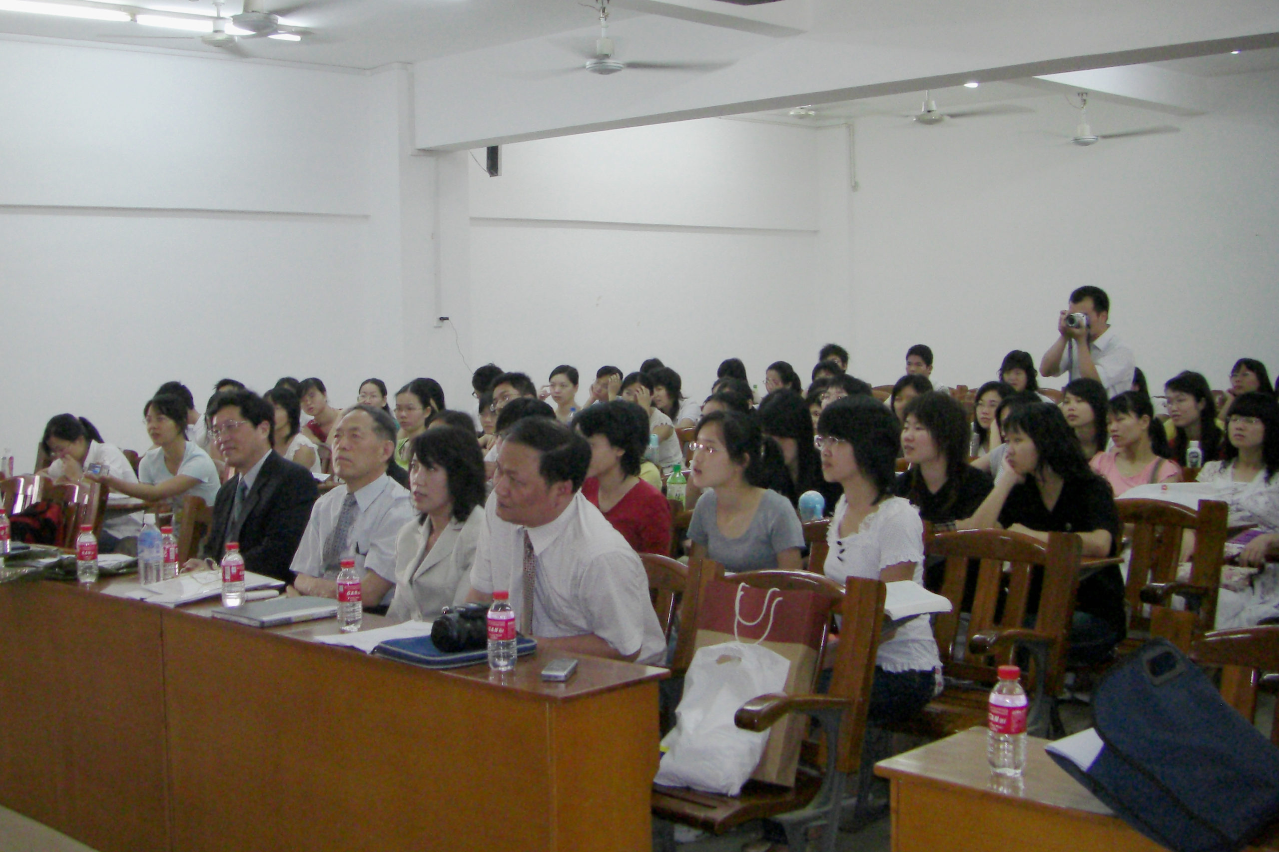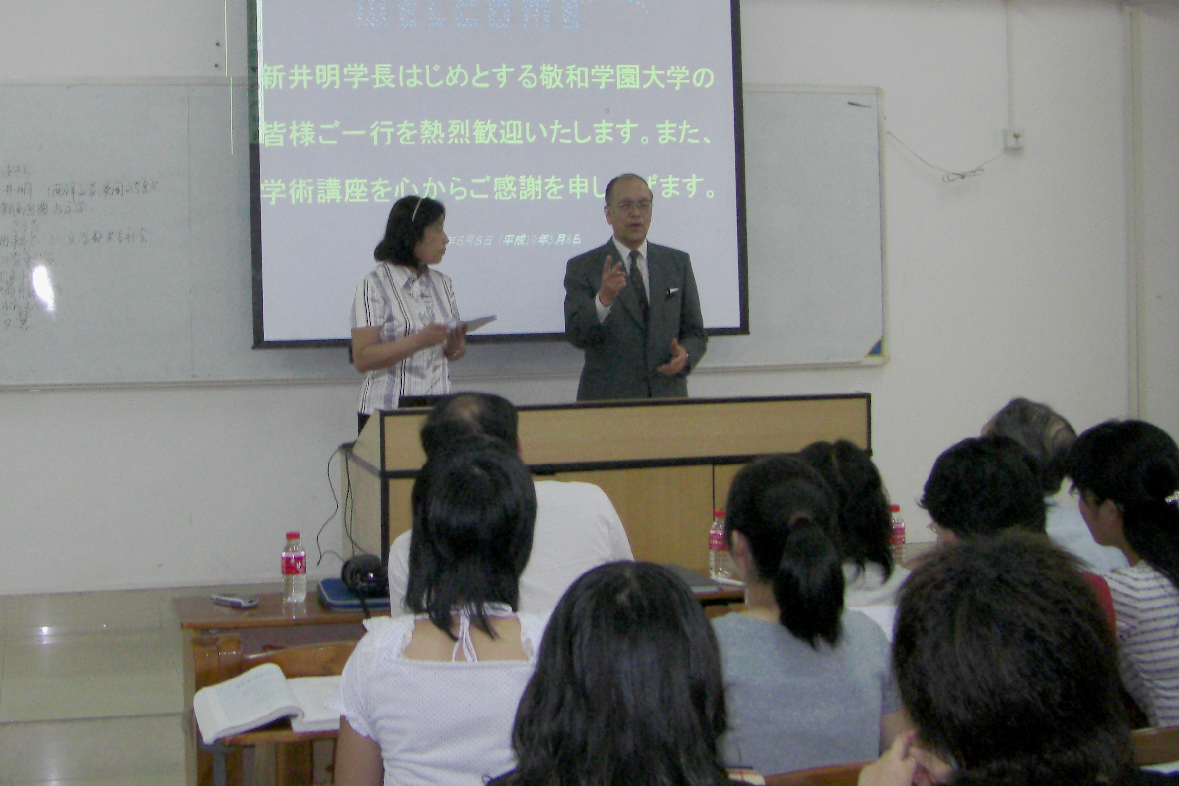 湛江師範大学では、外国語学部に日本語学科が開設されたことを記念して、本学教授 北嶋藤郷による文化講演会「『唐詩選』・『史記』を典故とした日本の俳句について」(挨拶: 新井明学長、本学紹介: 山田耕太教授、JCLP紹介: 房文慧教授)が開催され、多くの熱心な学生からの質疑がありました。また、懇談・交流会では、学生ならびに教員の交流、共同研究の促進などについて話し合い、お互いの友好関係を確認しました。