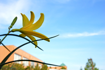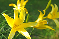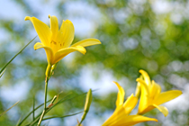 敬和学園大学に入って、左手の貯水池のほとりに黄色い「ニッコウキスゲ」が咲きました。「ニッコウキスゲ」は高原や湿地に群生するユリ科の植物で、ハイキングなどで一面黄色く染まったすばらしい群落をご覧になったことのある方もいらっしゃるかもしれません。