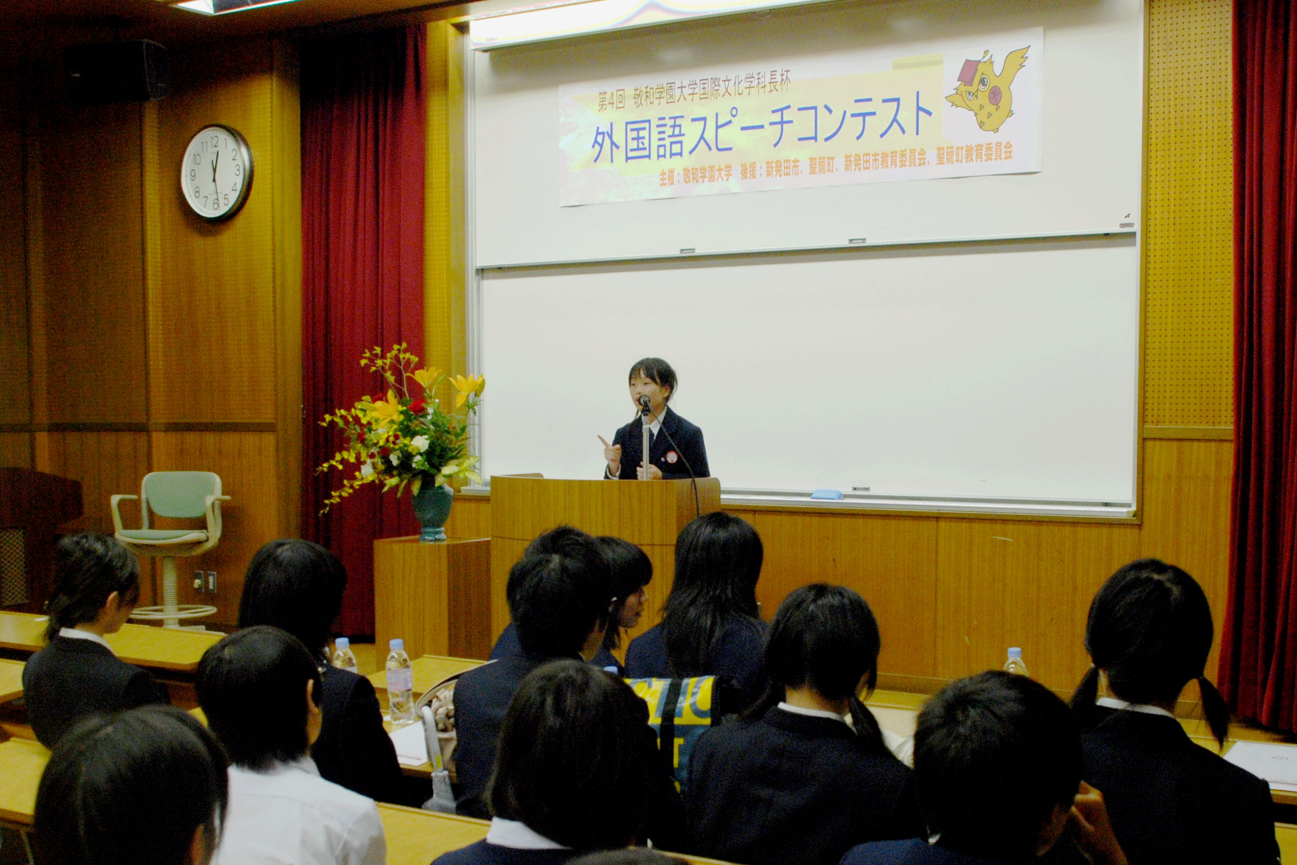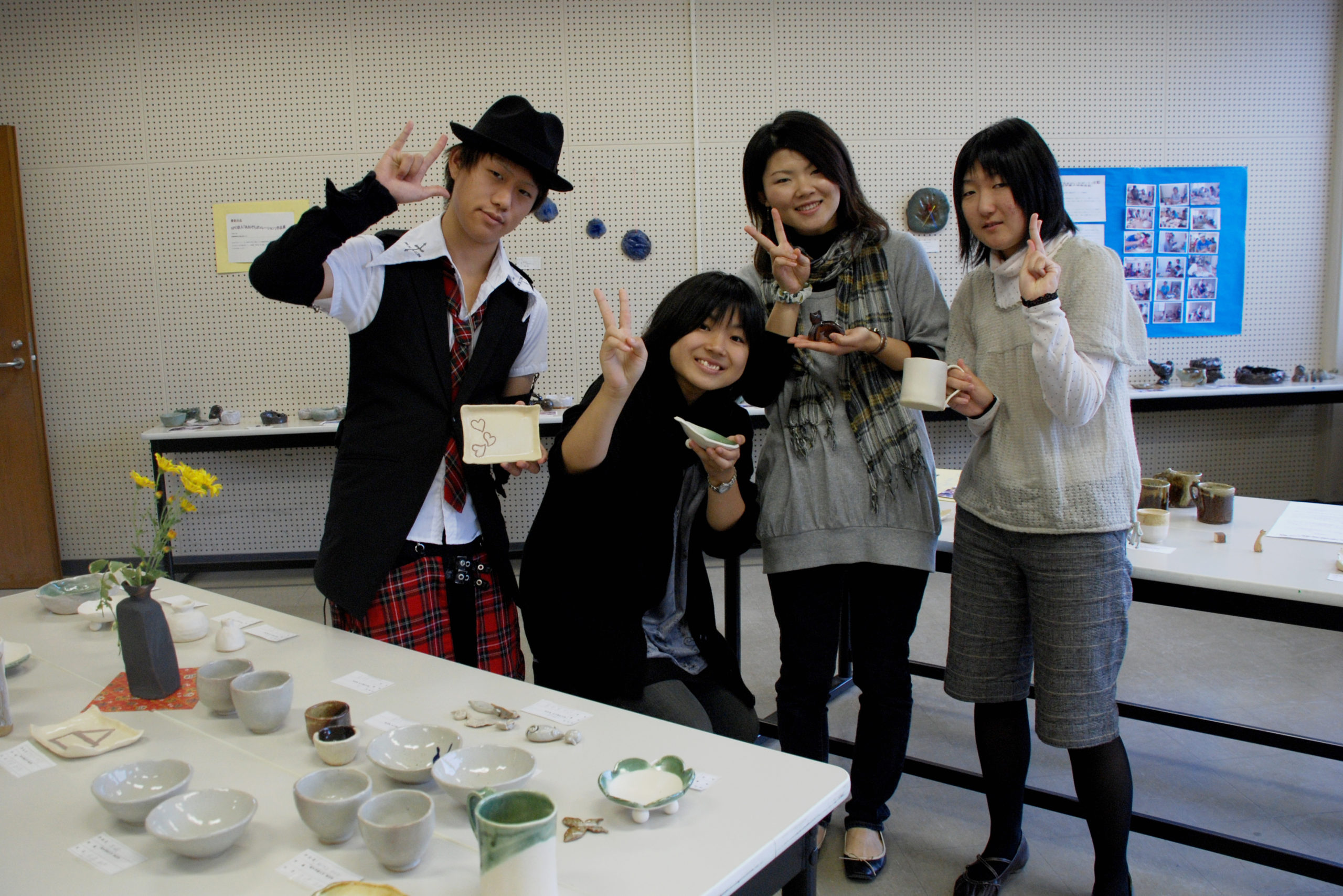 体育館やホールでは、地元聖籠太鼓や敬和学園高校よさこい同好会、本学ブラスバンド部や軽音楽部などによる熱い演奏と演舞を満喫することができました。そのほか、陶芸部によるやきもの体験、茶道部による茶会、FMラジオサークルによる生中継、教職課程や国際ボランティアサークルの教室展示、そして外国語スピーチコンテストなど、大いに盛り上がりました。