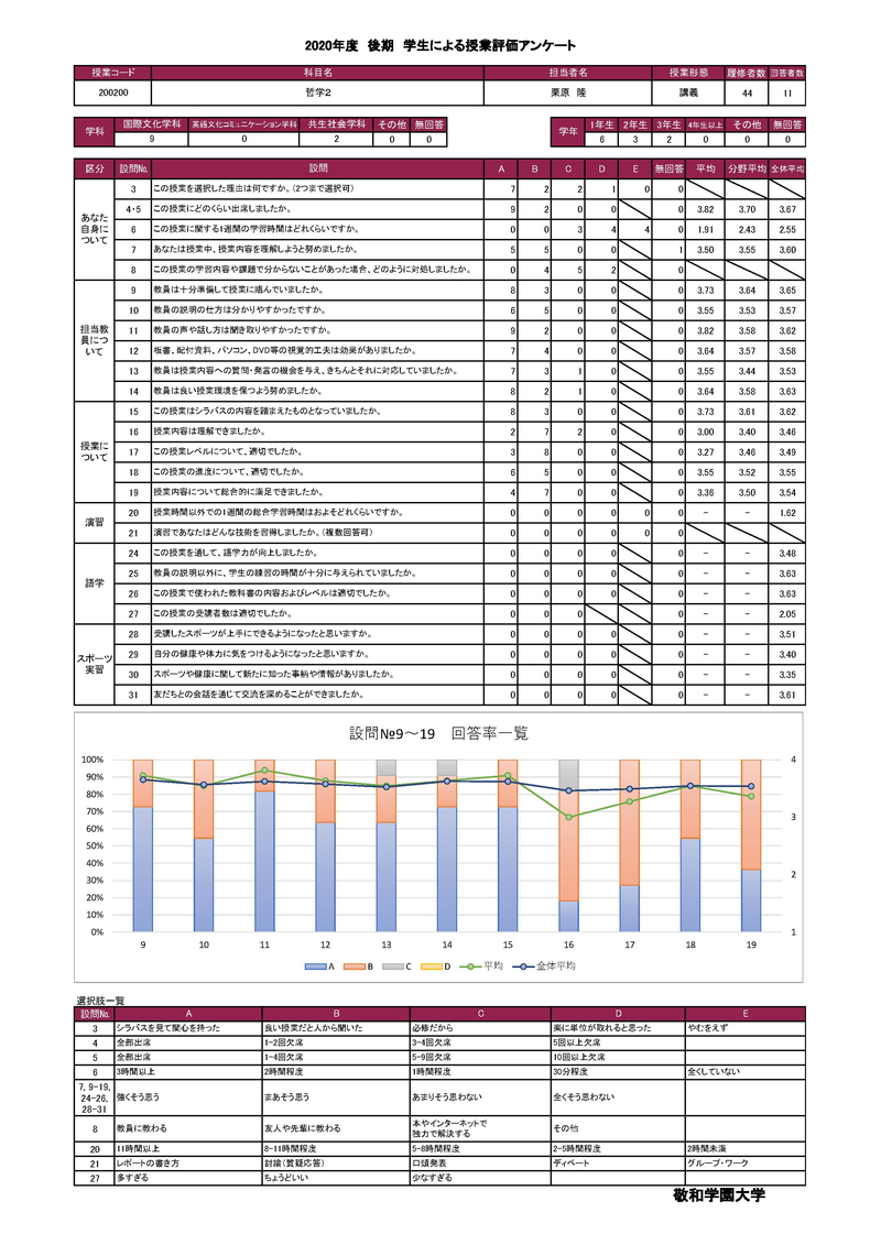 敬和学園大学 授業アンケート集計