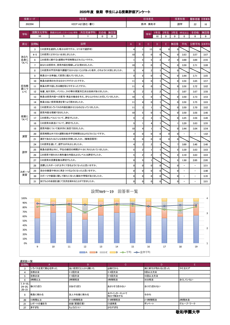 敬和学園大学 授業アンケート集計