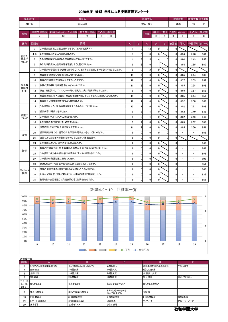 敬和学園大学 授業アンケート集計