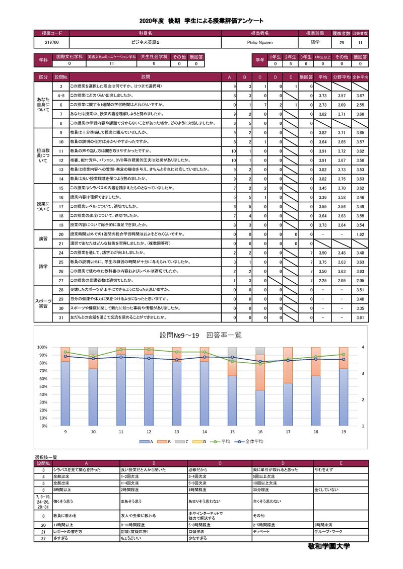 敬和学園大学 授業アンケート集計