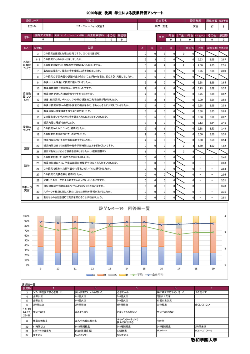 敬和学園大学 授業アンケート集計