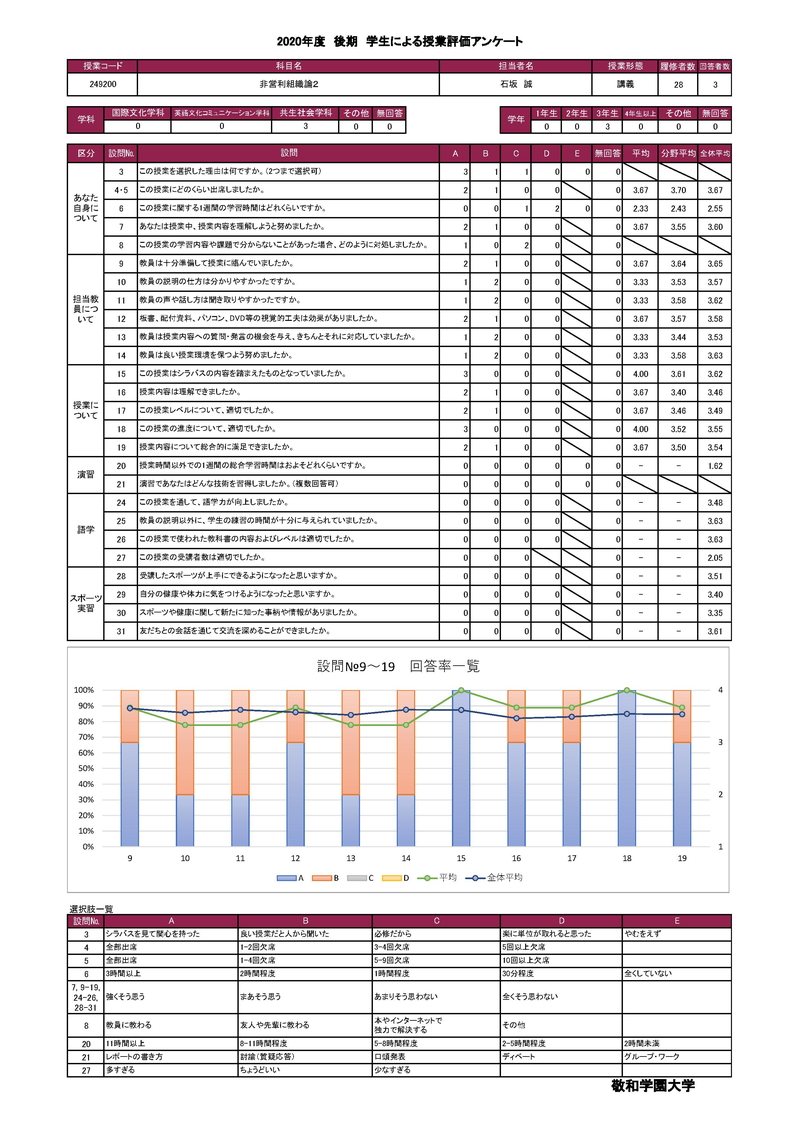 敬和学園大学 授業アンケート集計