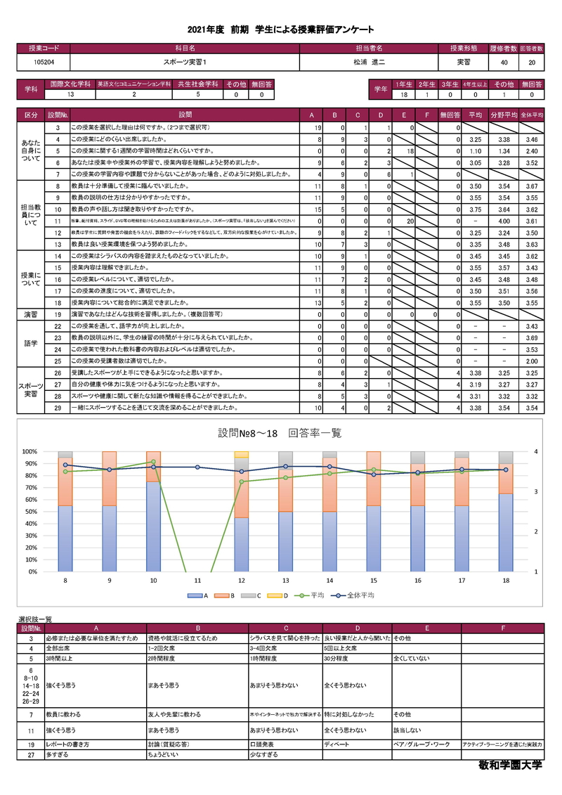 敬和学園大学 授業アンケート集計