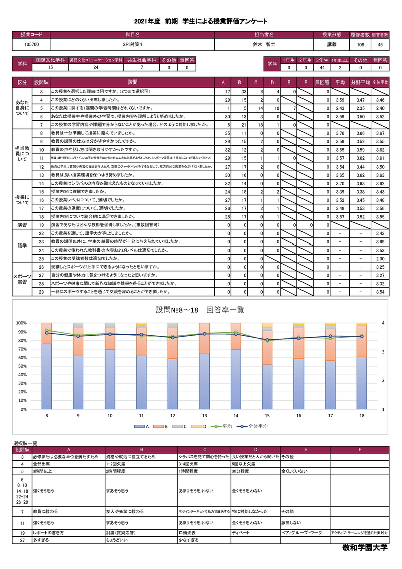 敬和学園大学 授業アンケート集計