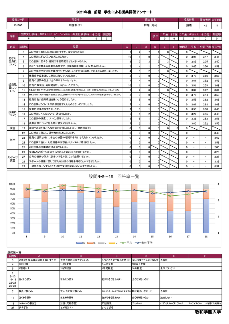 敬和学園大学 授業アンケート集計
