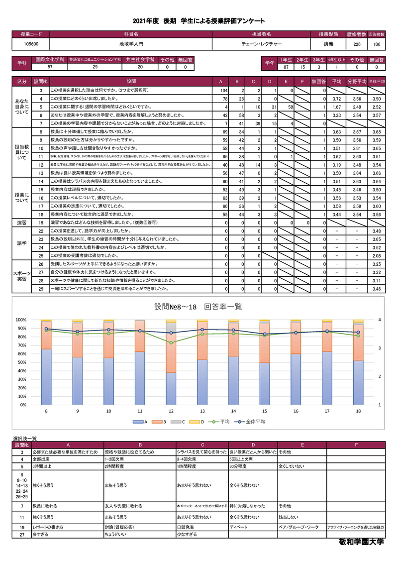 敬和学園大学 授業アンケート集計