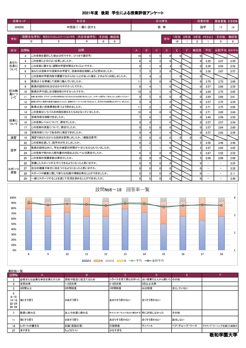 敬和学園大学 授業アンケート集計