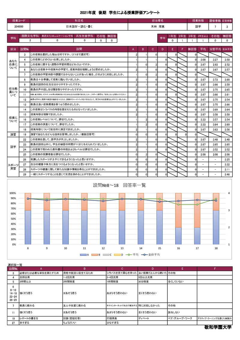 敬和学園大学 授業アンケート集計