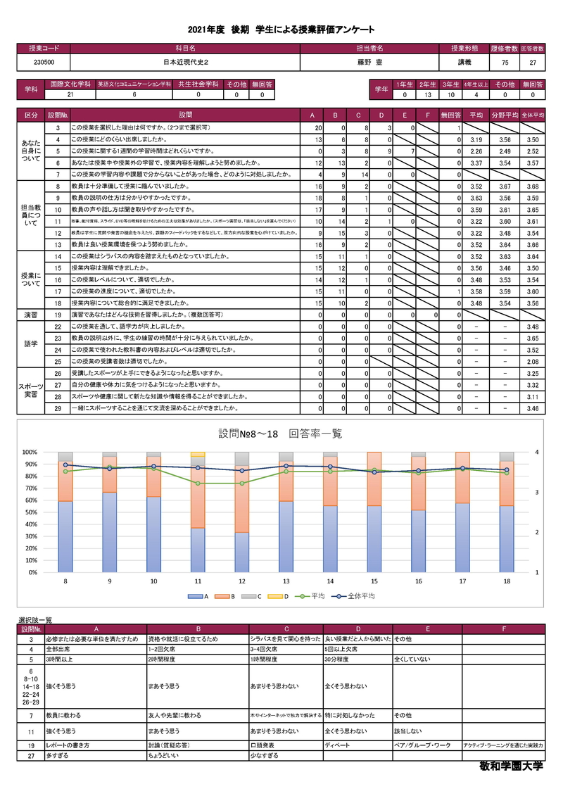 敬和学園大学 授業アンケート集計