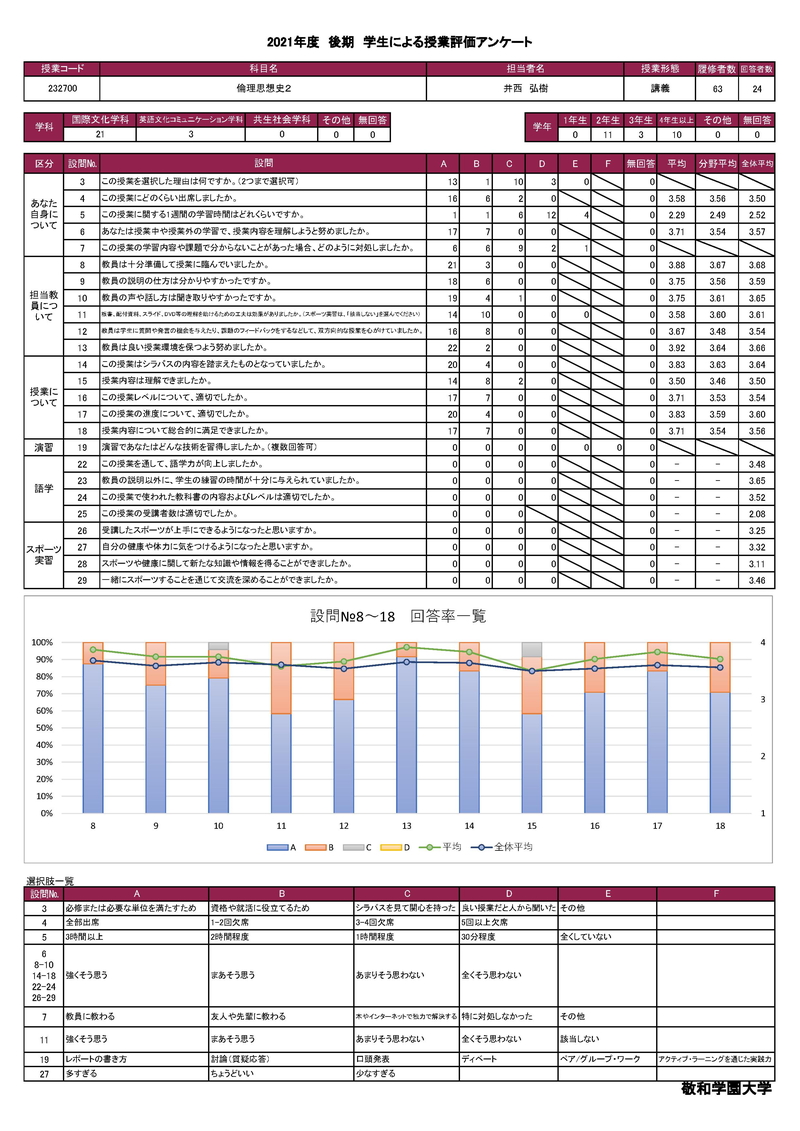 敬和学園大学 授業アンケート集計