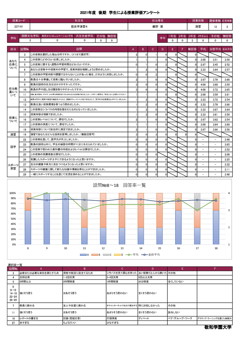 敬和学園大学 授業アンケート集計