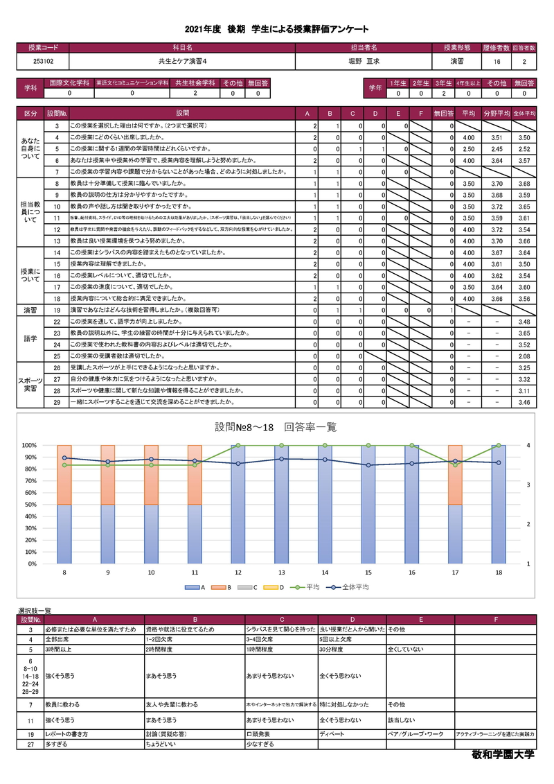 敬和学園大学 授業アンケート集計