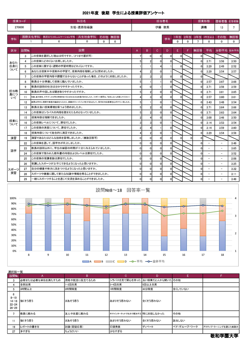 敬和学園大学 授業アンケート集計
