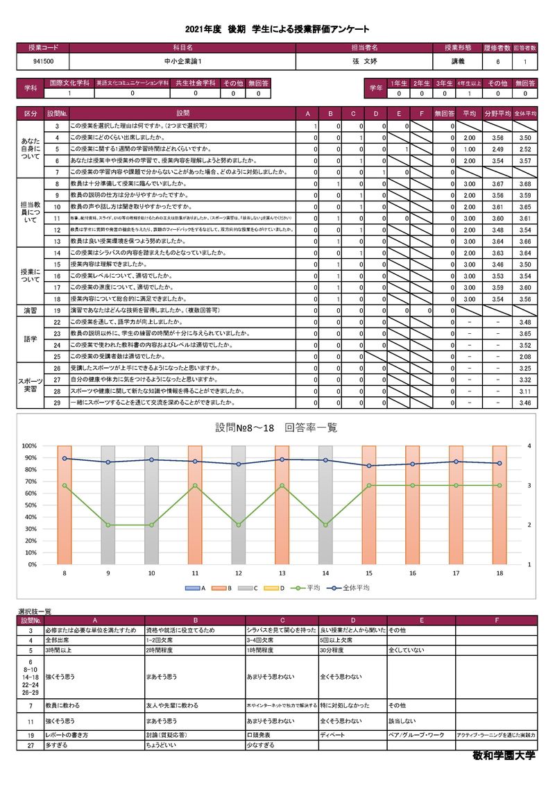 敬和学園大学 授業アンケート集計
