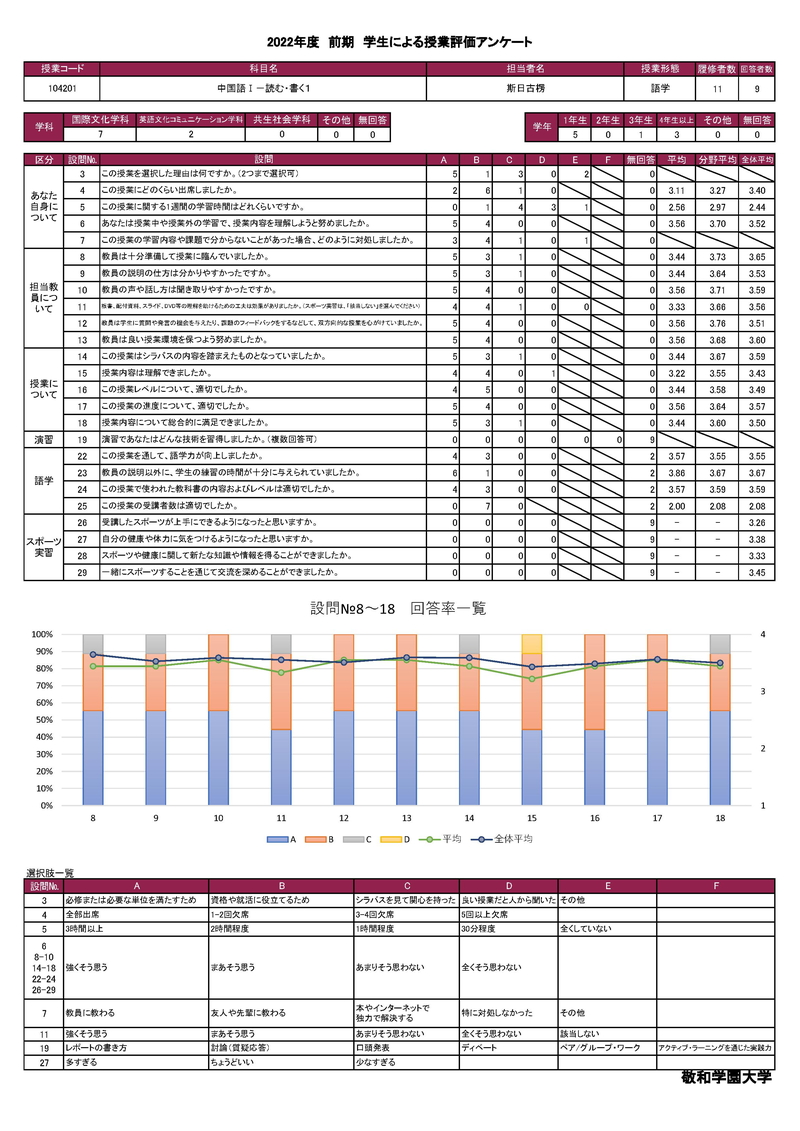 敬和学園大学 授業アンケート集計