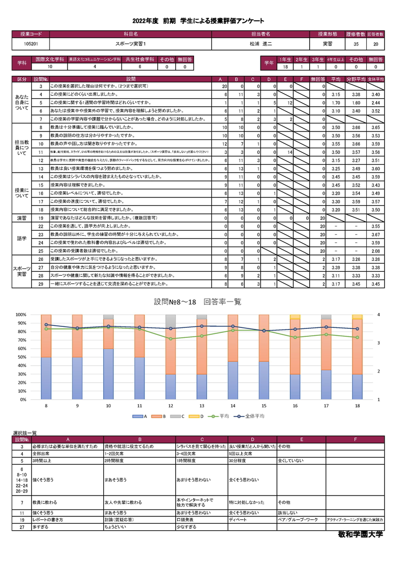 敬和学園大学 授業アンケート集計