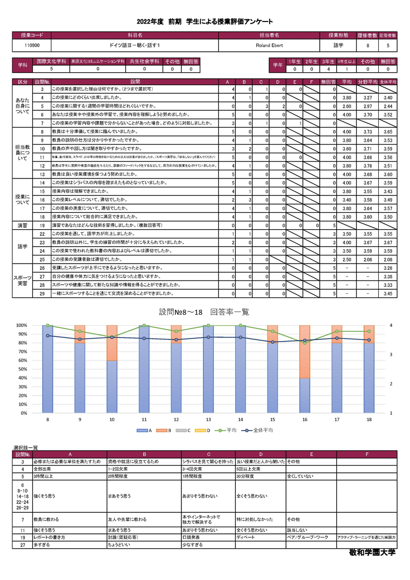 敬和学園大学 授業アンケート集計