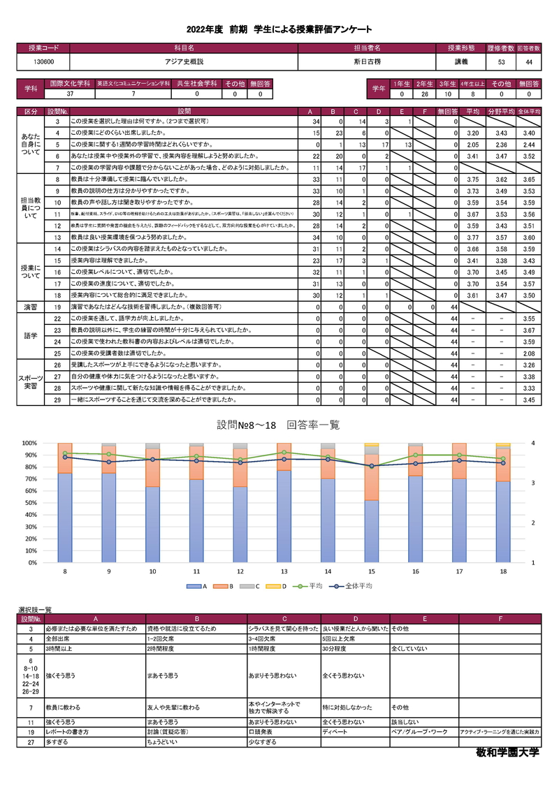 敬和学園大学 授業アンケート集計