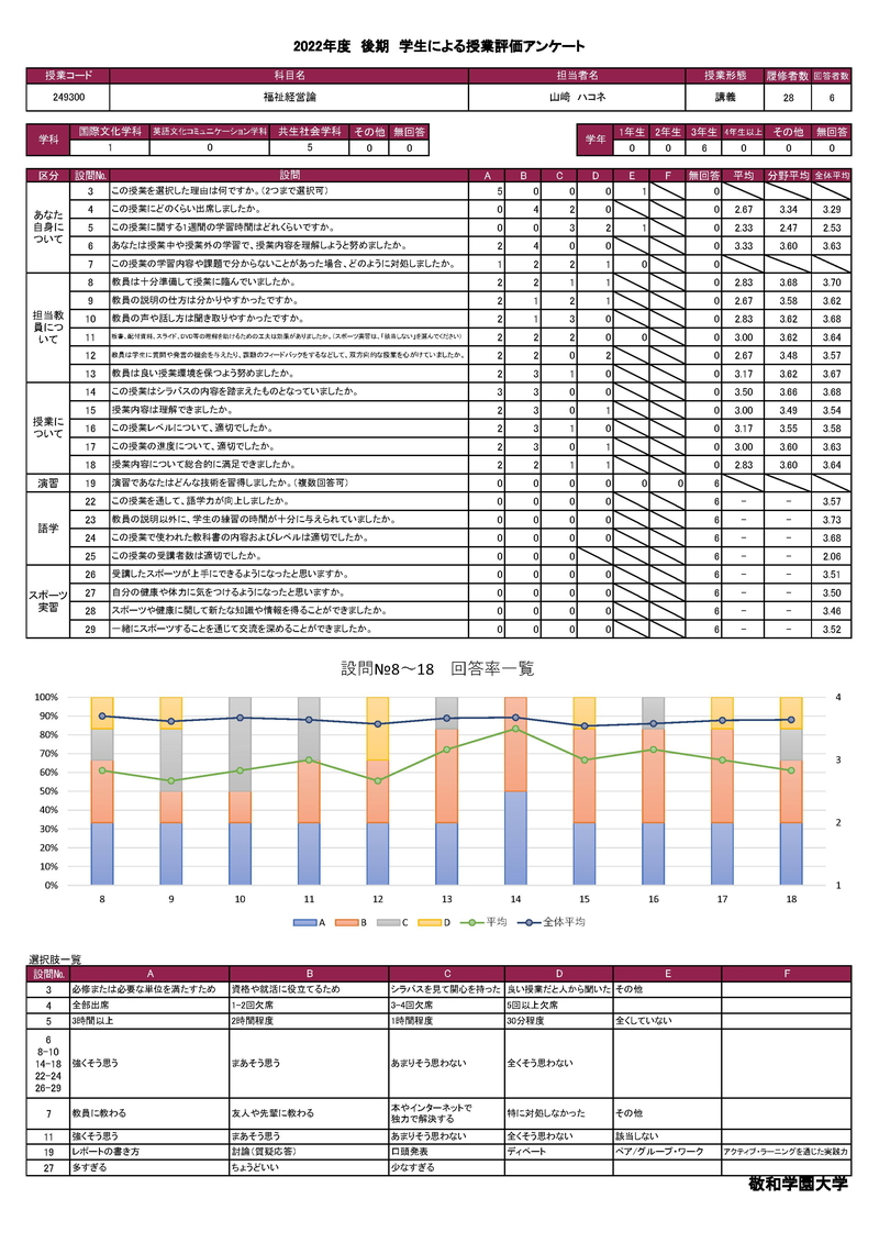 敬和学園大学 授業アンケート集計
