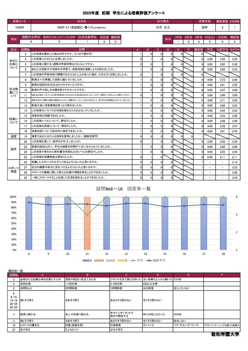 敬和学園大学 授業アンケート集計