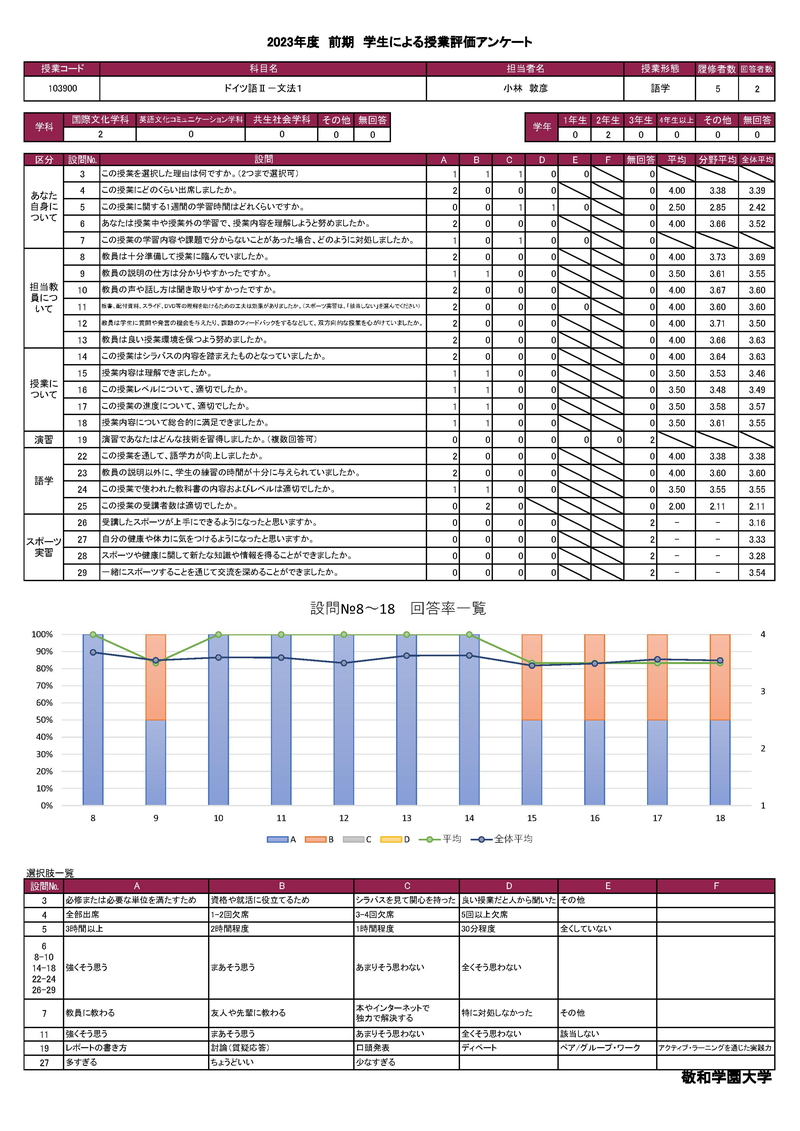 敬和学園大学 授業アンケート集計