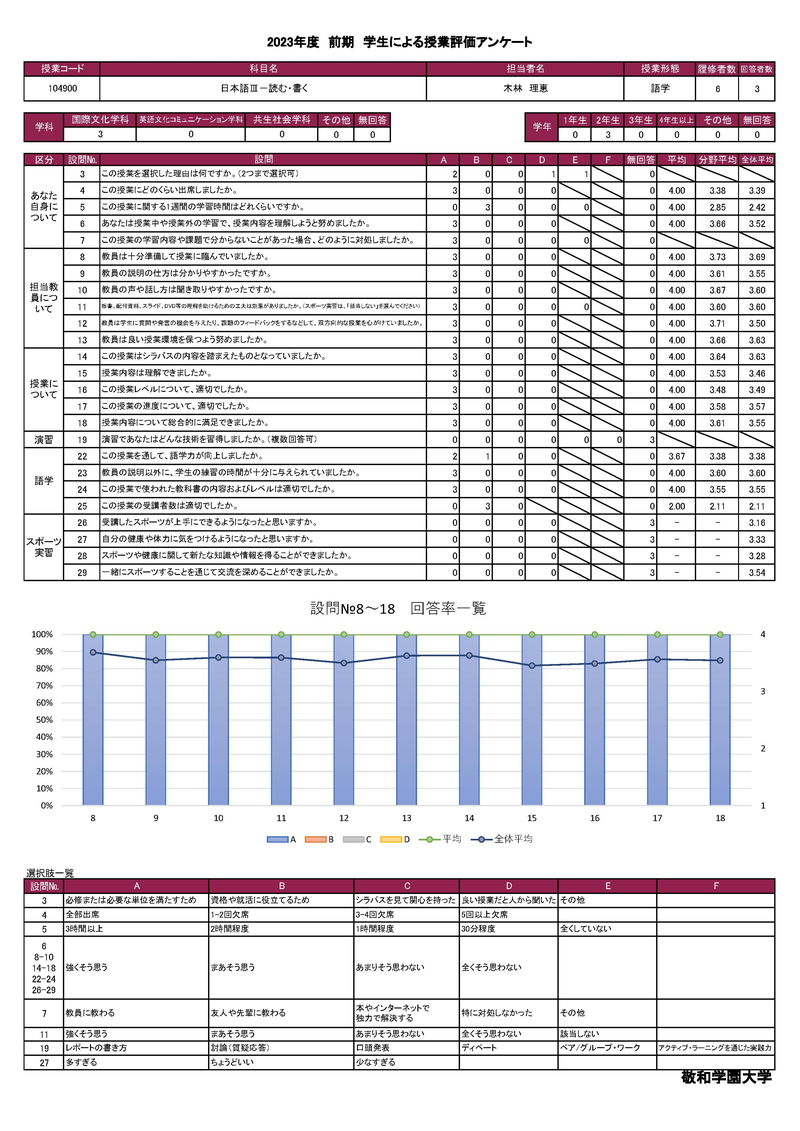敬和学園大学 授業アンケート集計