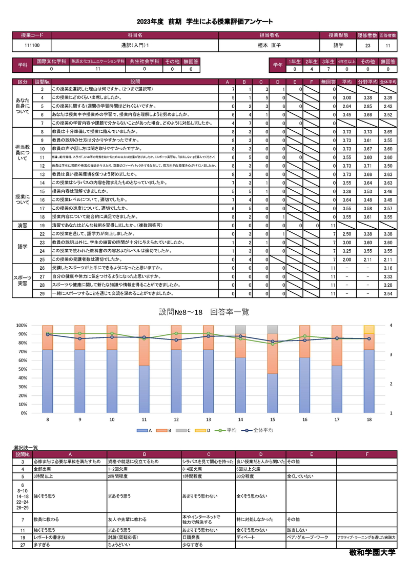 敬和学園大学 授業アンケート集計