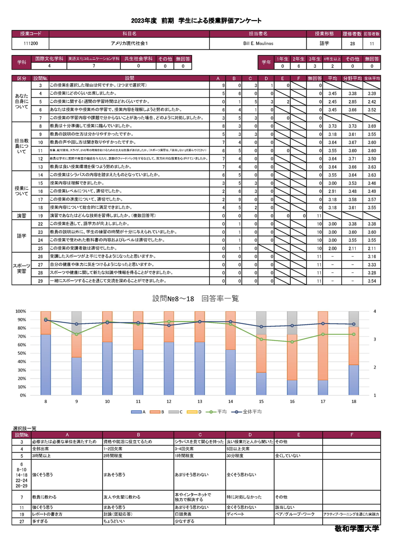 敬和学園大学 授業アンケート集計