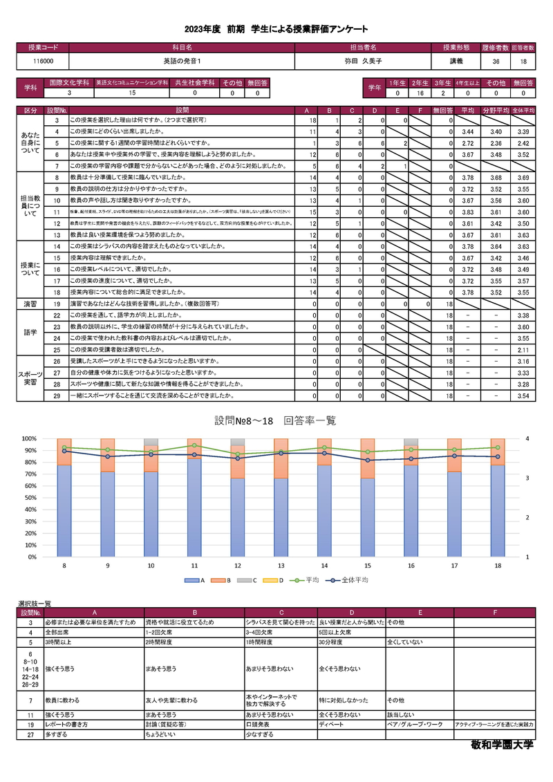 敬和学園大学 授業アンケート集計